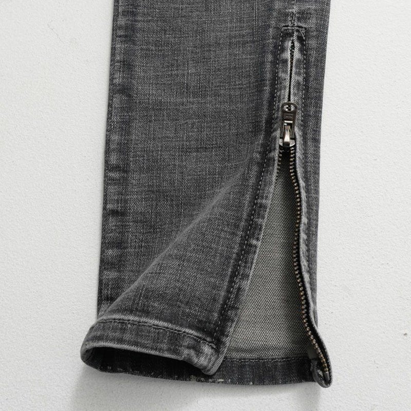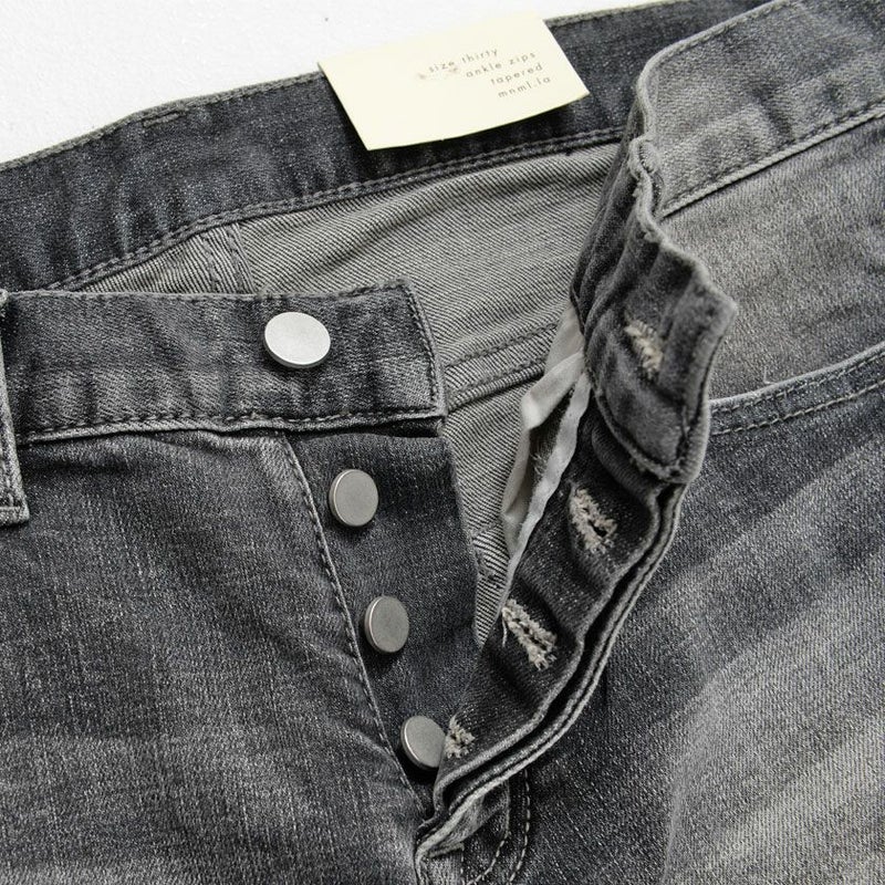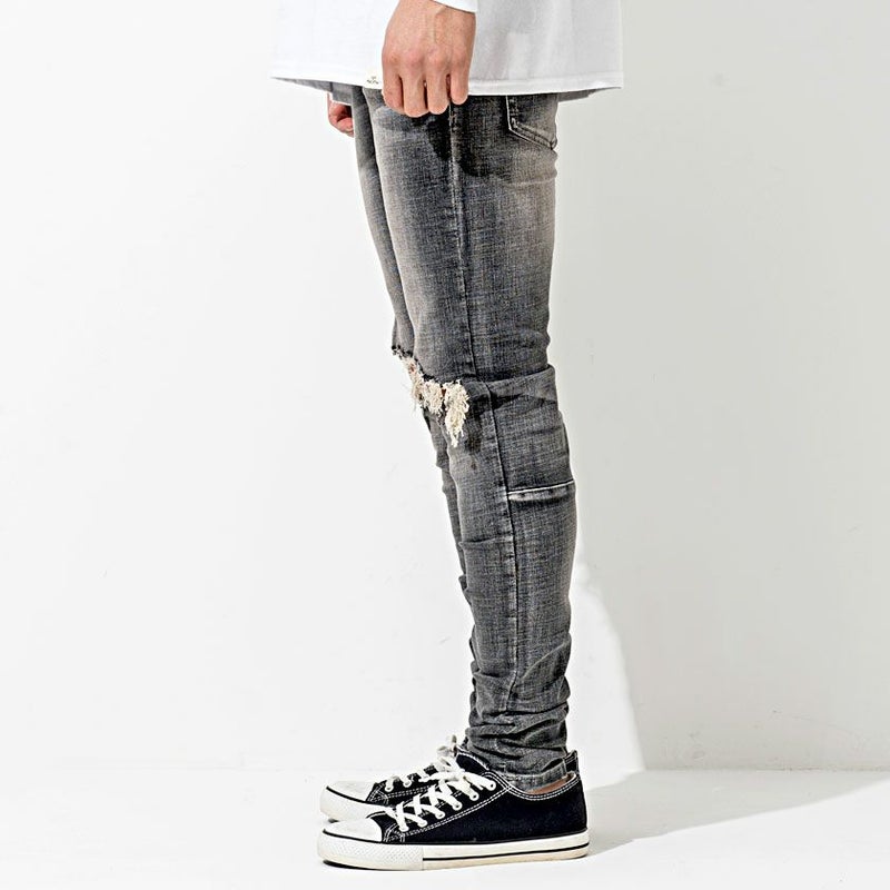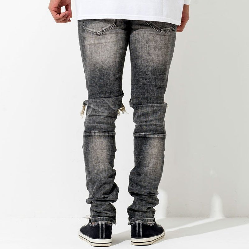 穿き心地の良いストレッチデニムに最先端のハイダメージ加工とウォッシュド加工を施し、大胆なヒゲやアタリを実現。