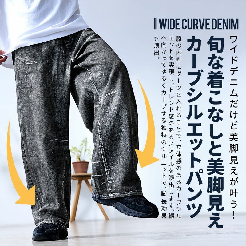 【箔加工が際立つ、カーブシルエットのワイドデニム】