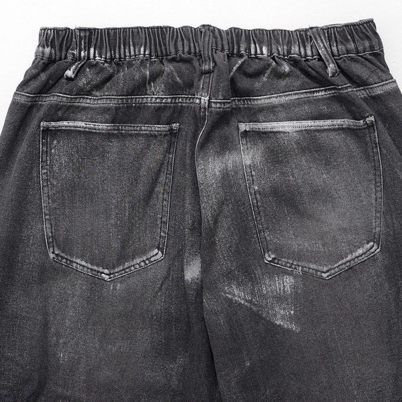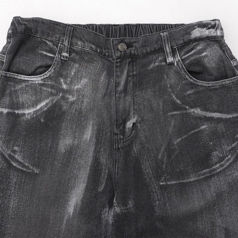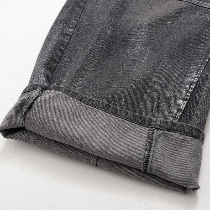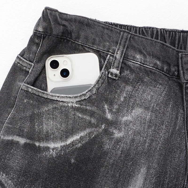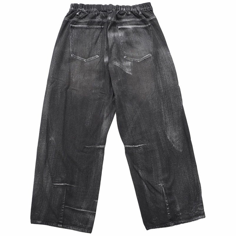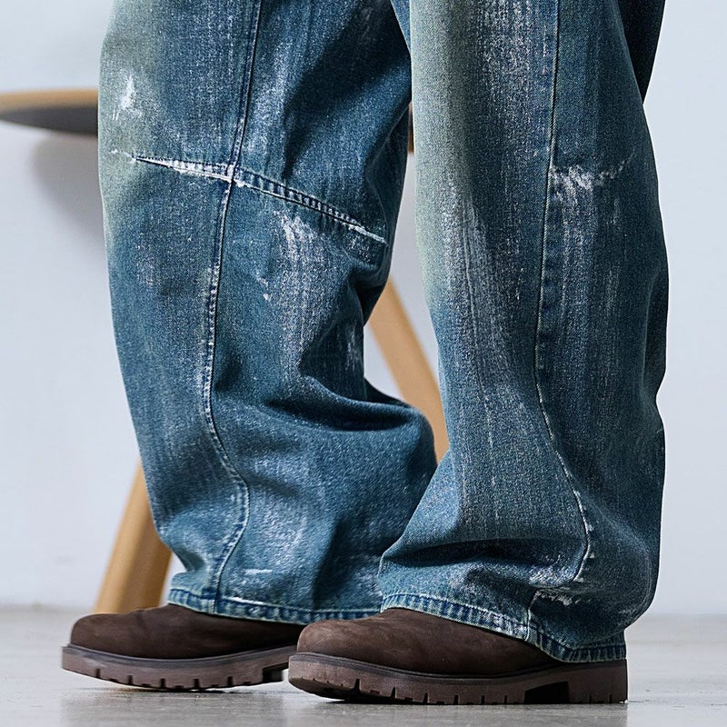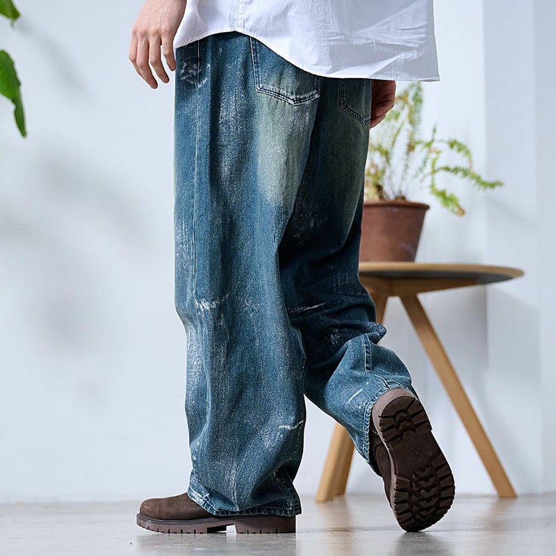 全体に施された銀箔加工がアクセントになった、存在感抜群のワイドデニムパンツ。