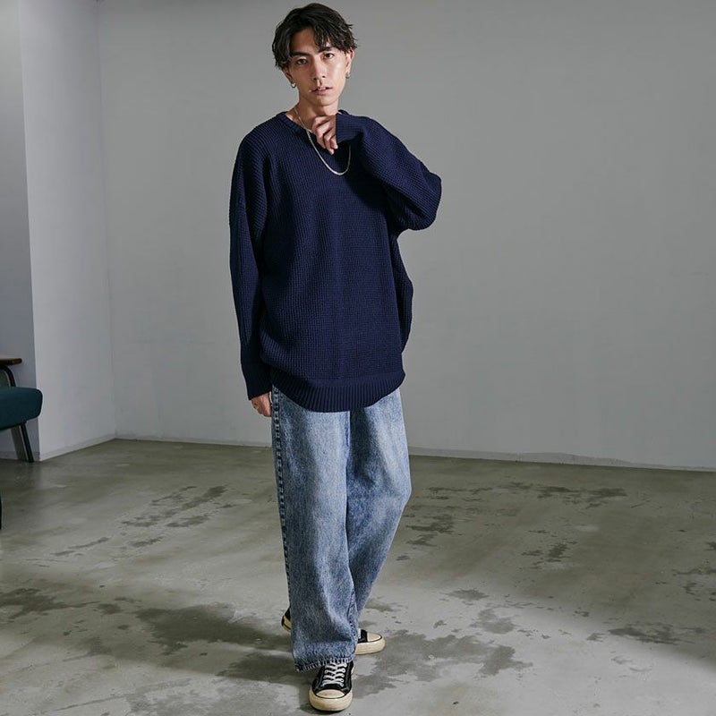 ストンとした落ち感と、裾に溜まるワイドシルエットがストリートな雰囲気漂う1本。