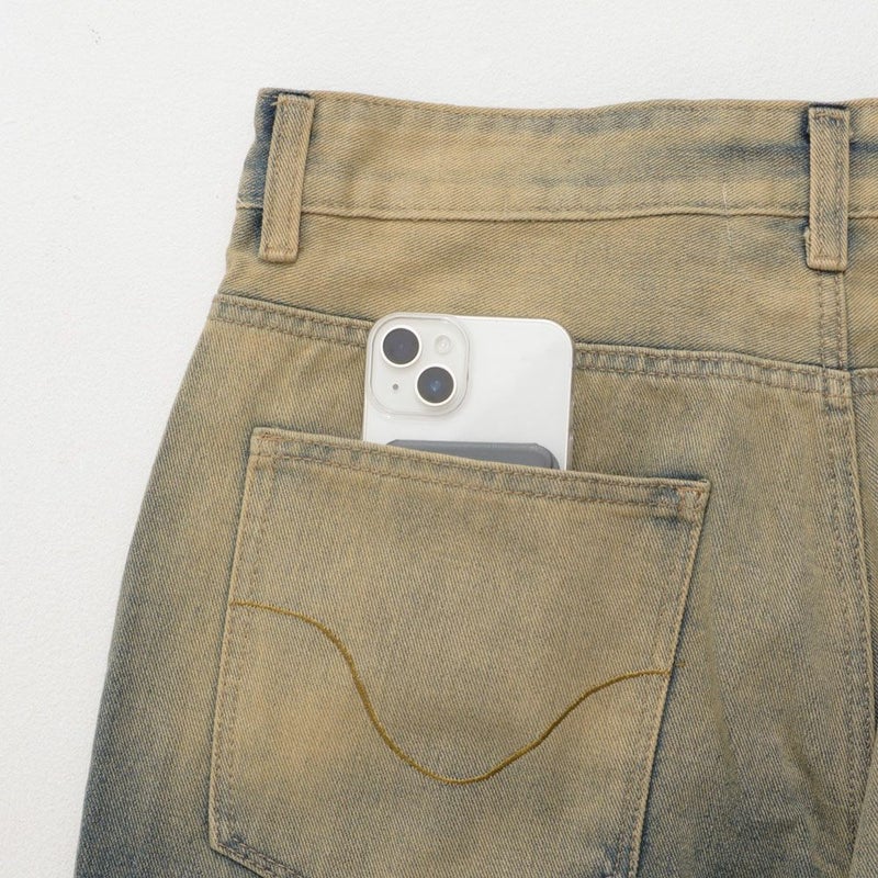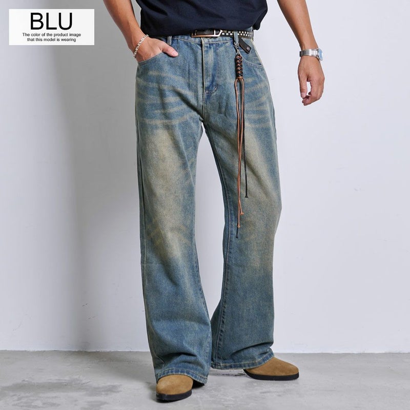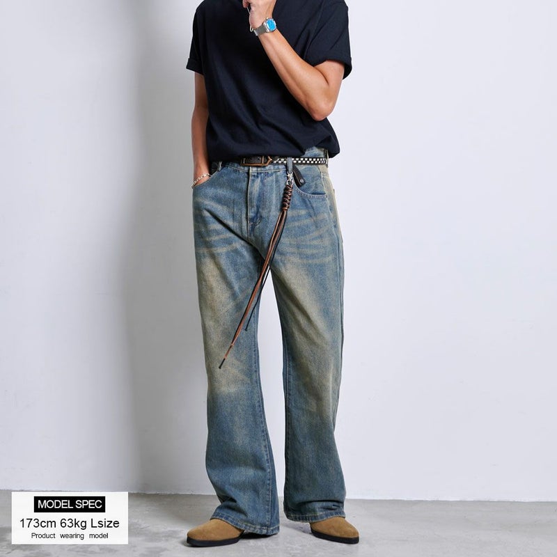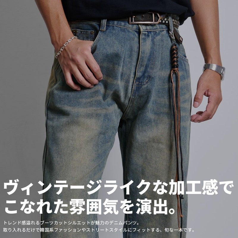 ヴィンテージライクな加工感が魅力で、古着のようなあたりやひげ加工、さらにウォッシュカラーでこなれた雰囲気を演出。