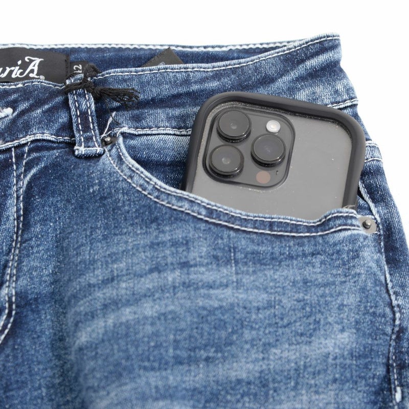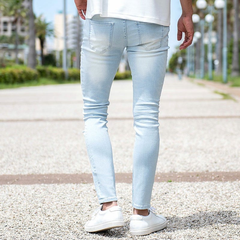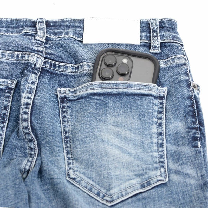 ストレッチ素材を使用し、快適な穿き心地を実現したデニムパンツ。