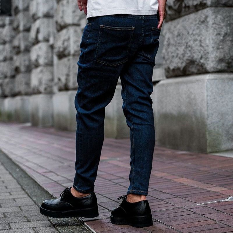 腰回りにゆとりを持たせた、全体的に細いスキニーテーパードシルエット。