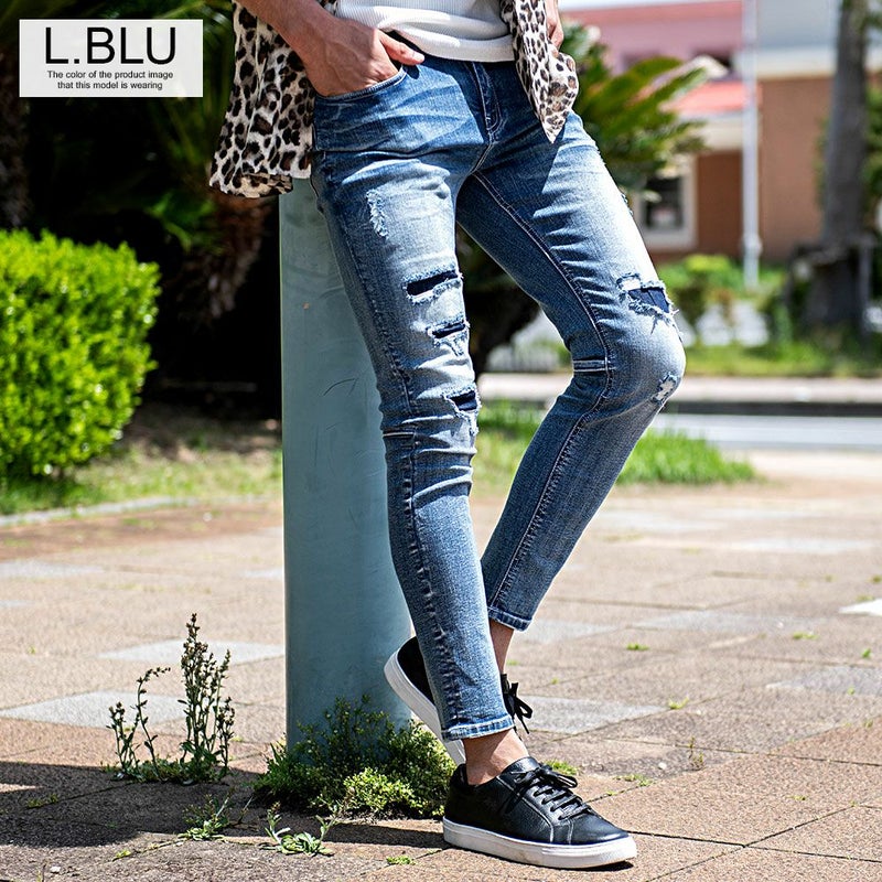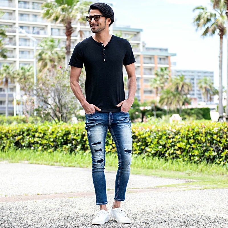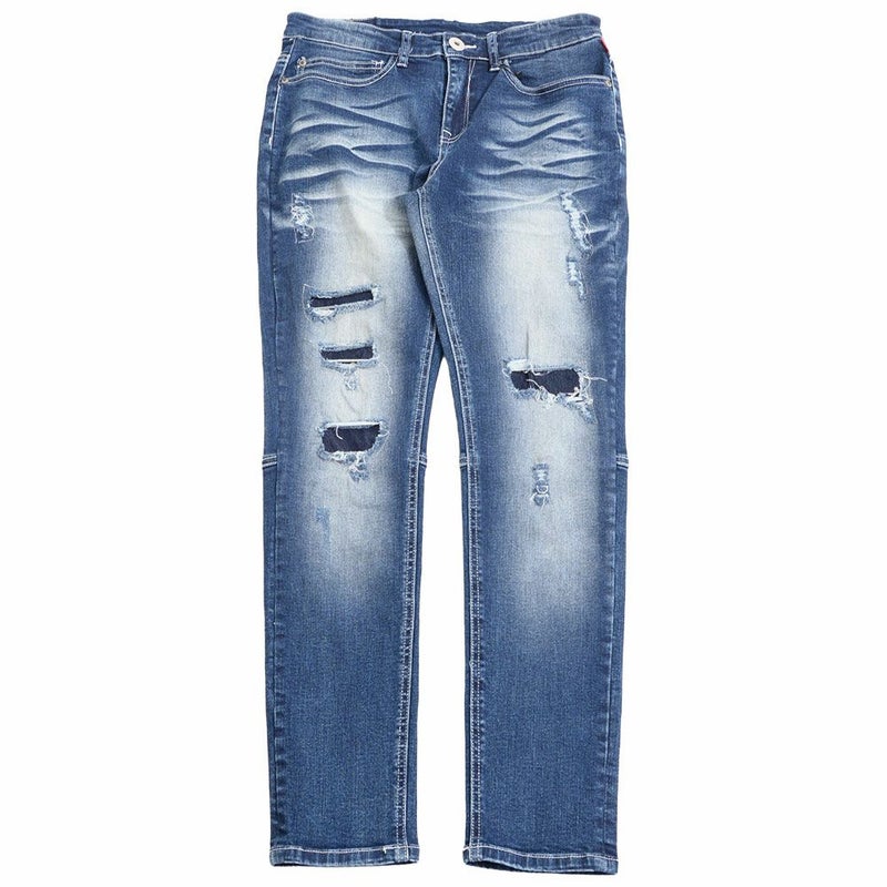 ストレッチ素材を使用し、快適な穿き心地を実現したスキニーデニムパンツ。
