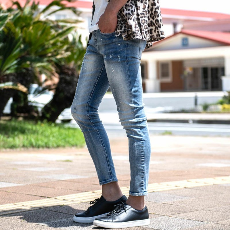 ハードすぎないダメージ感とペイント加工を採用し、奥深く表情豊かなこだわりのスキニーパンツを実現しました。