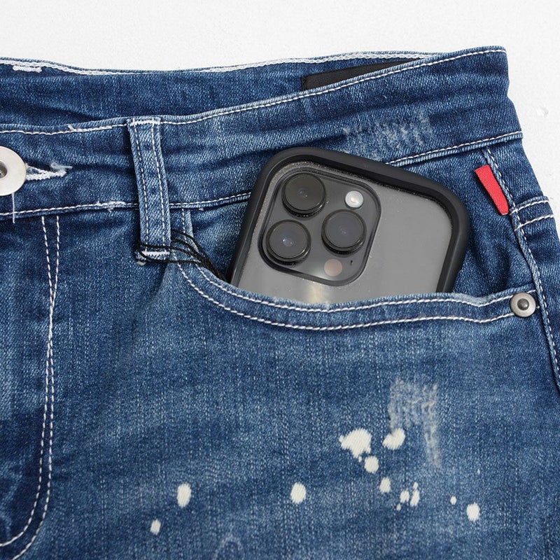 ストレッチ素材を使用し、快適な穿き心地を実現したデニムパンツ。