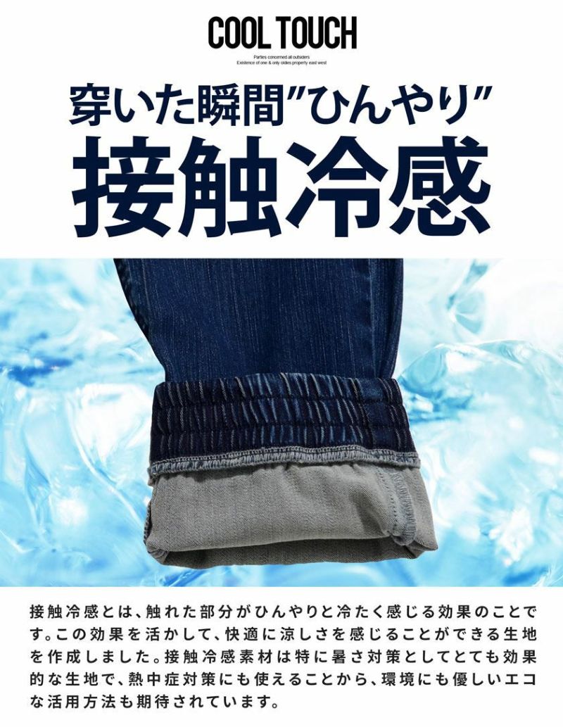 穿いた瞬間ひんやりと冷たい接触冷感生地を採用したジョガーパンツ。