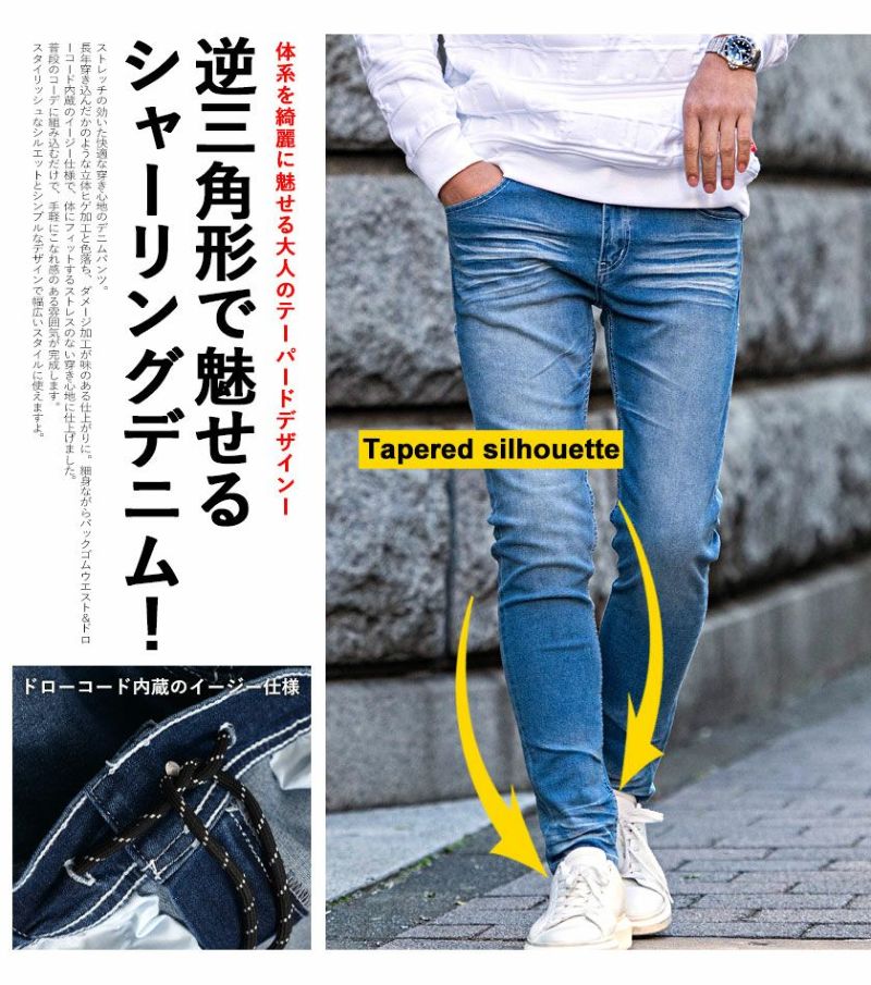 ストレッチの効いた快適な穿き心地のデニムパンツ。