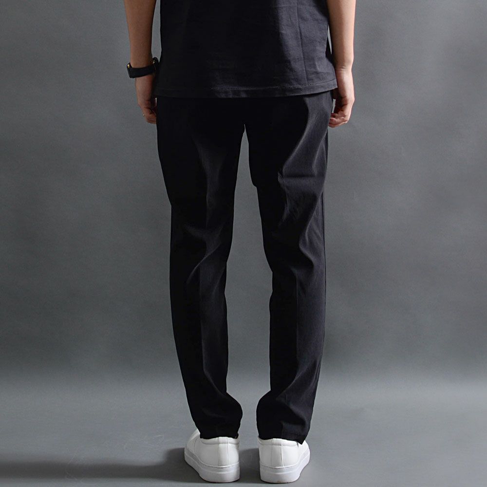 タックと足先にかけてセンタープレスが入り、正面からも横からも足のラインが綺麗に映ります。