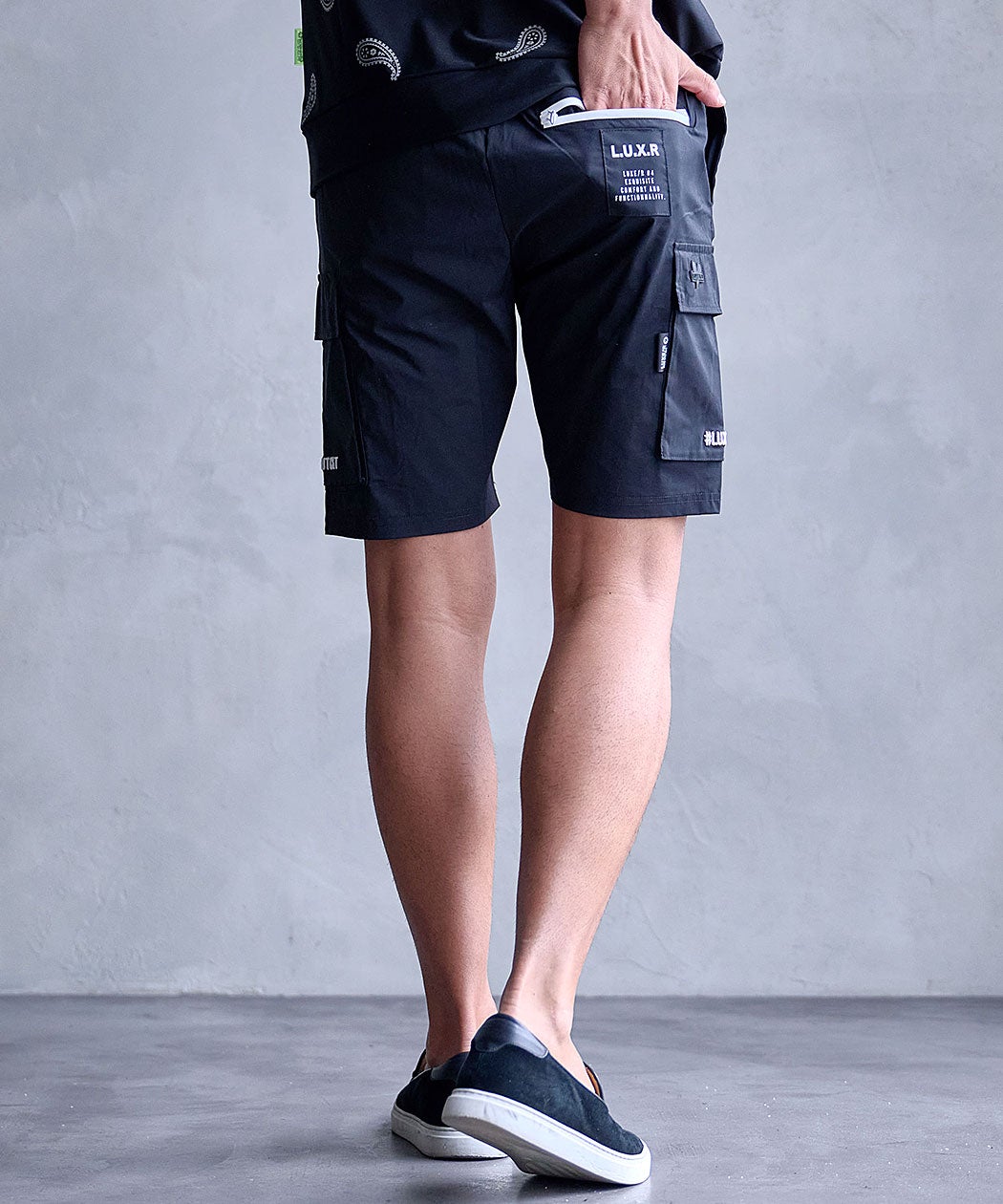 他の画像を見る ハーフパンツ メンズ ゴルフ ショーツ 短パン 膝上 カーゴ イージーパンツ 綿 ナイロン 布帛 軽量 速乾 ロゴ 刺繍 プリント ワンポイント 細身 ストレッチ 黒 スポーツ 服 春 夏 男性 LUXE/R(ラグジュ)ストレッチナイロン布帛ショーツ/全4色 販売価格 ¥ 8,690 税込 カートに入れる お気に入りに登録する