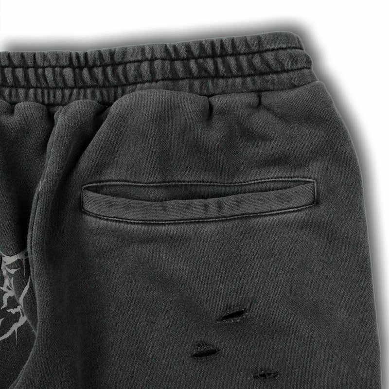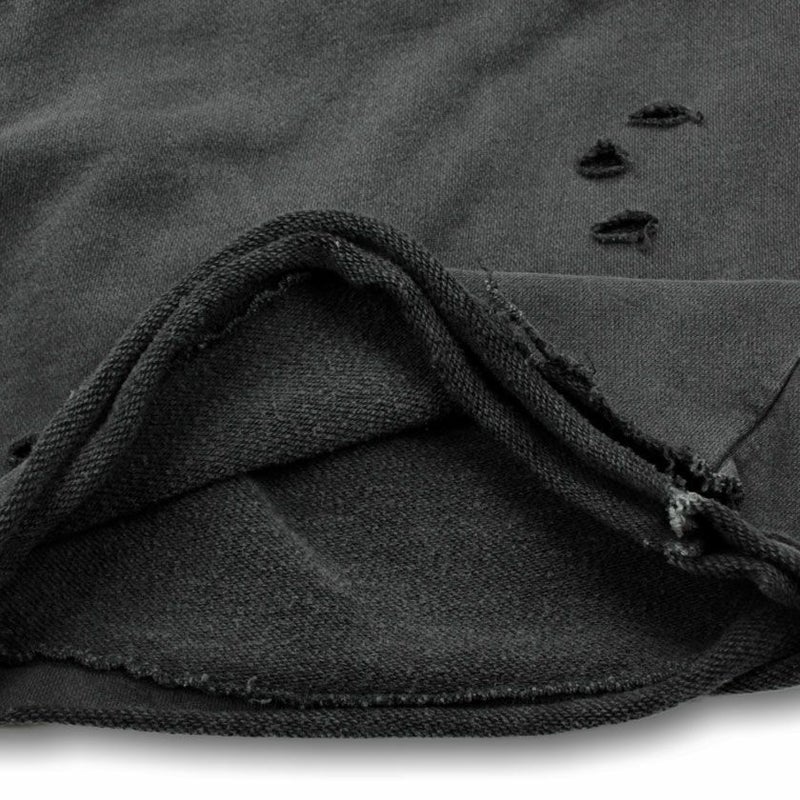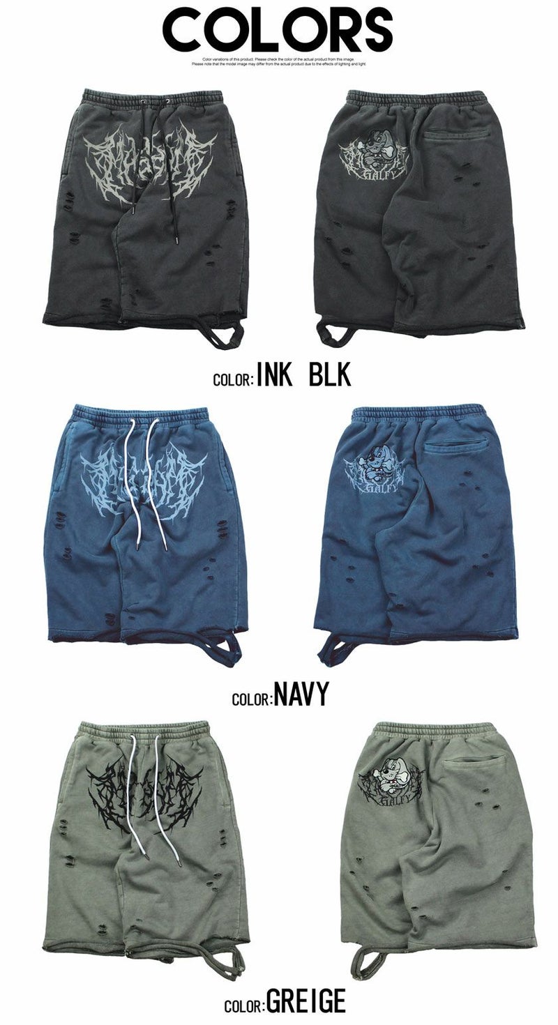 ハードなダメージ加工を施した存在感抜群のスウェットショーツ。