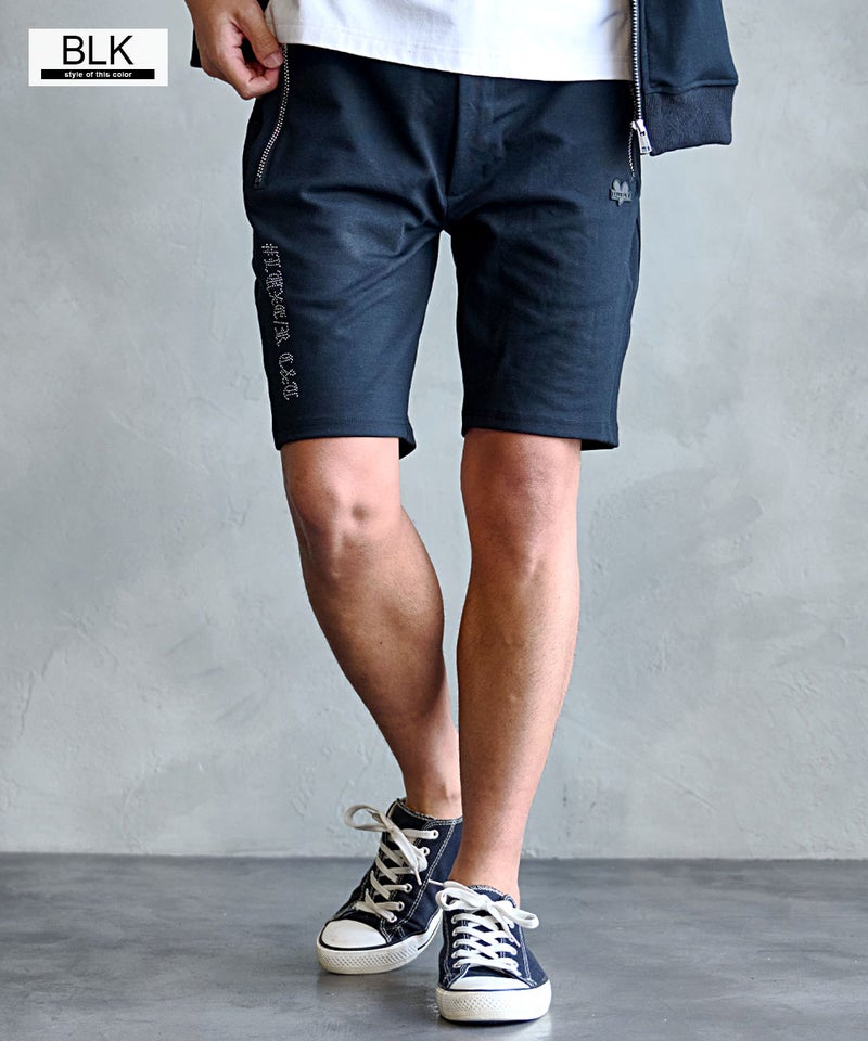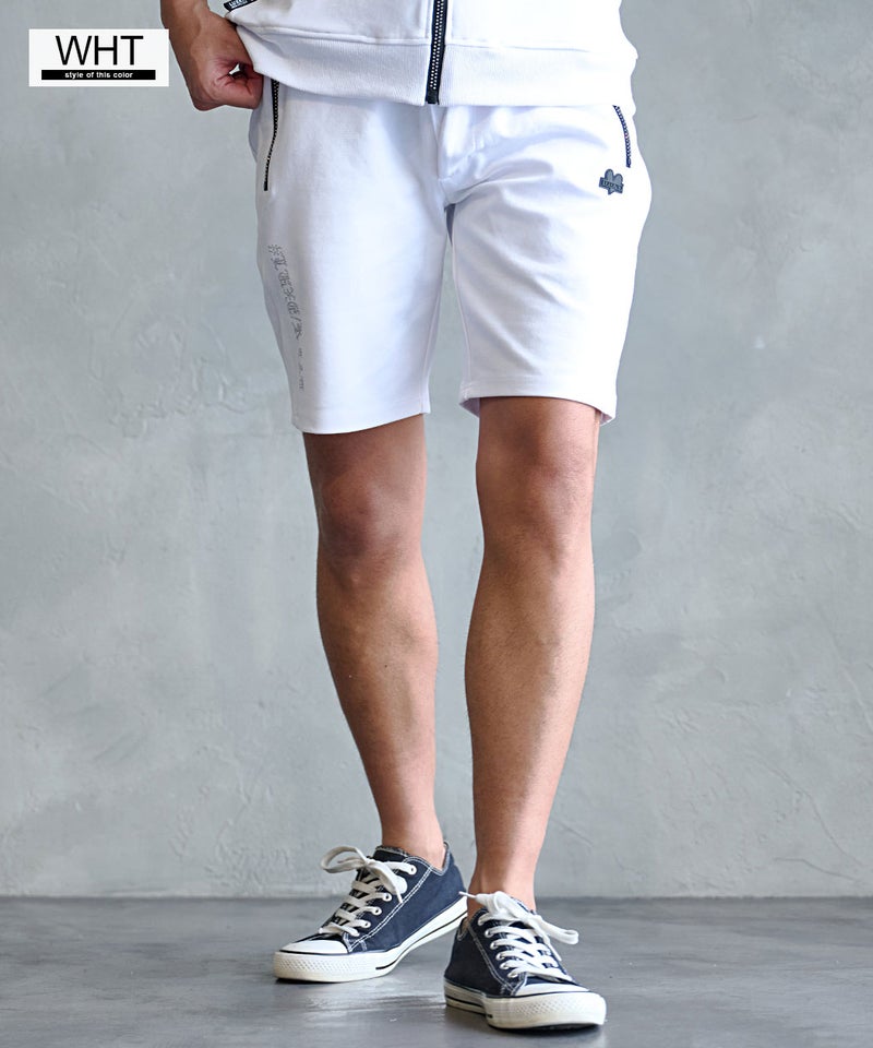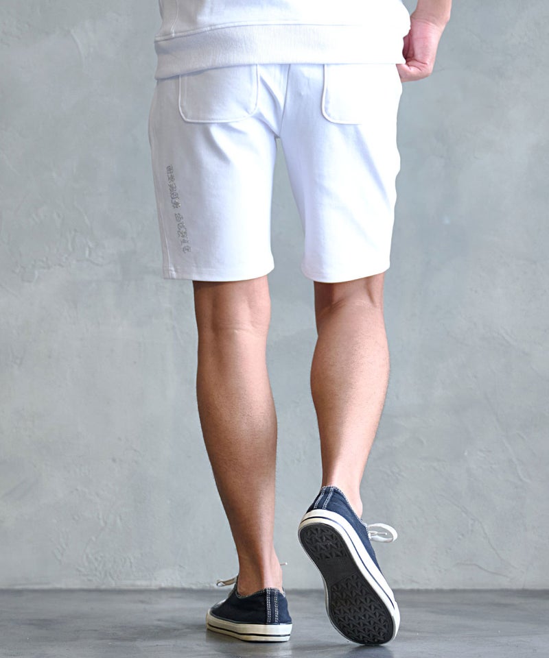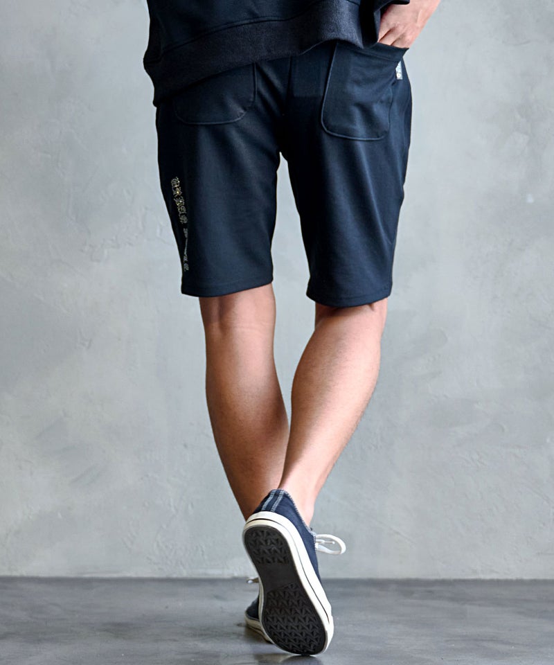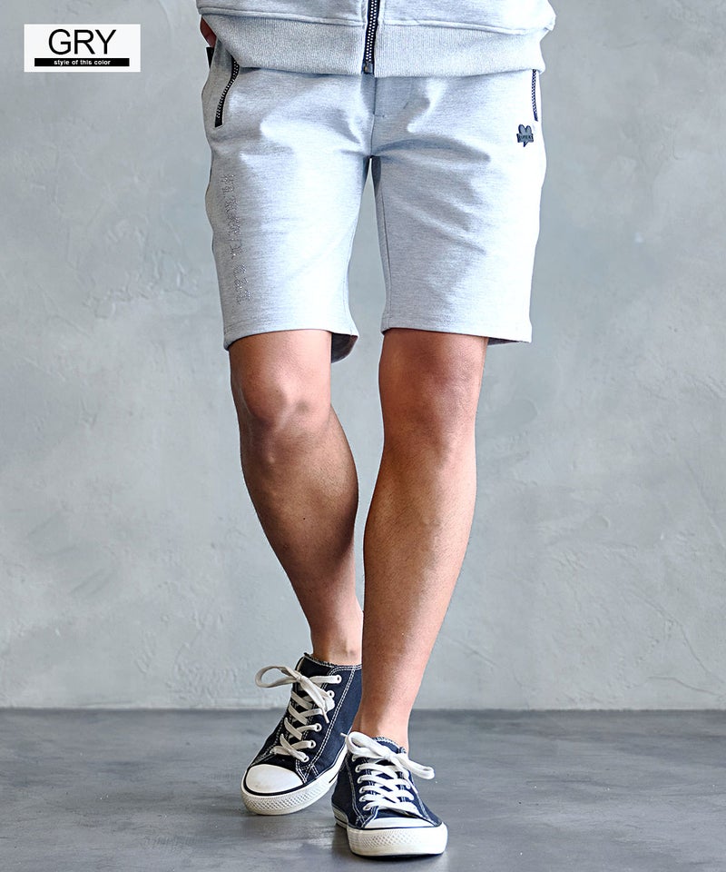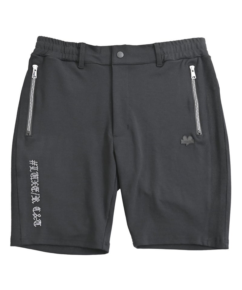 上品な輝きを放つラインストーンが目を引く、存在感のあるショートパンツ。
