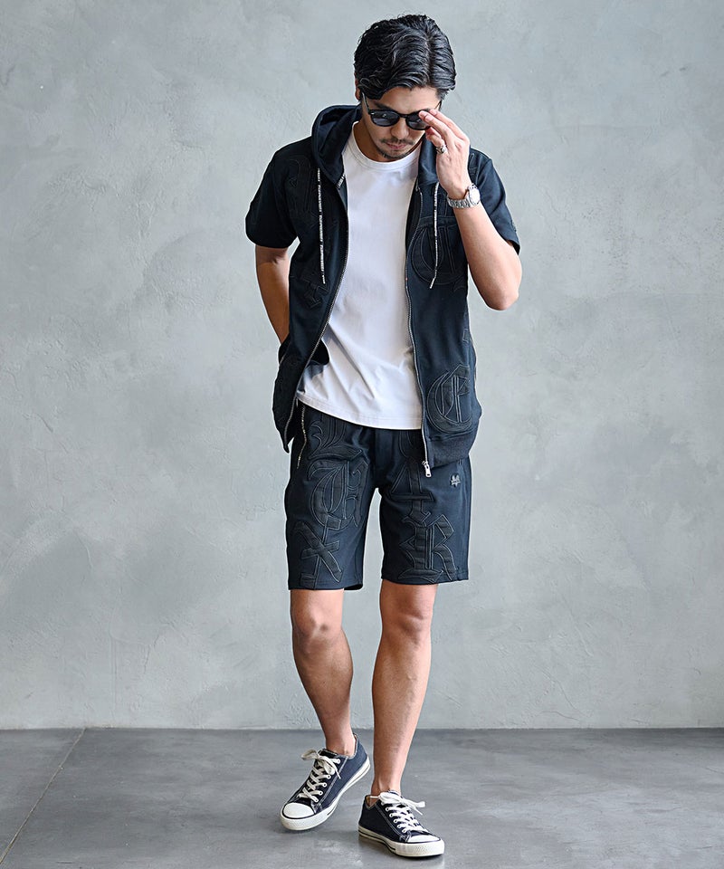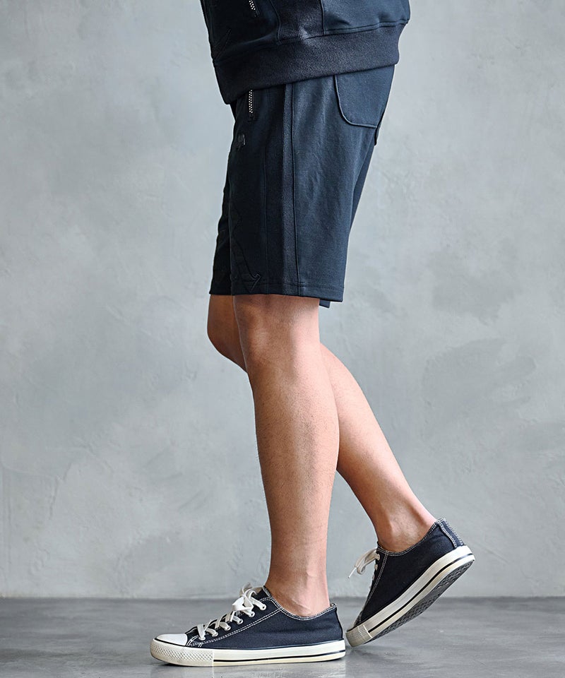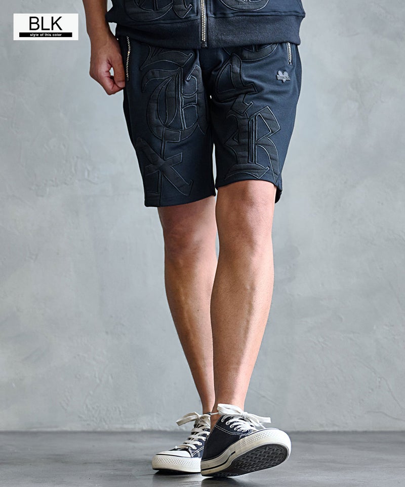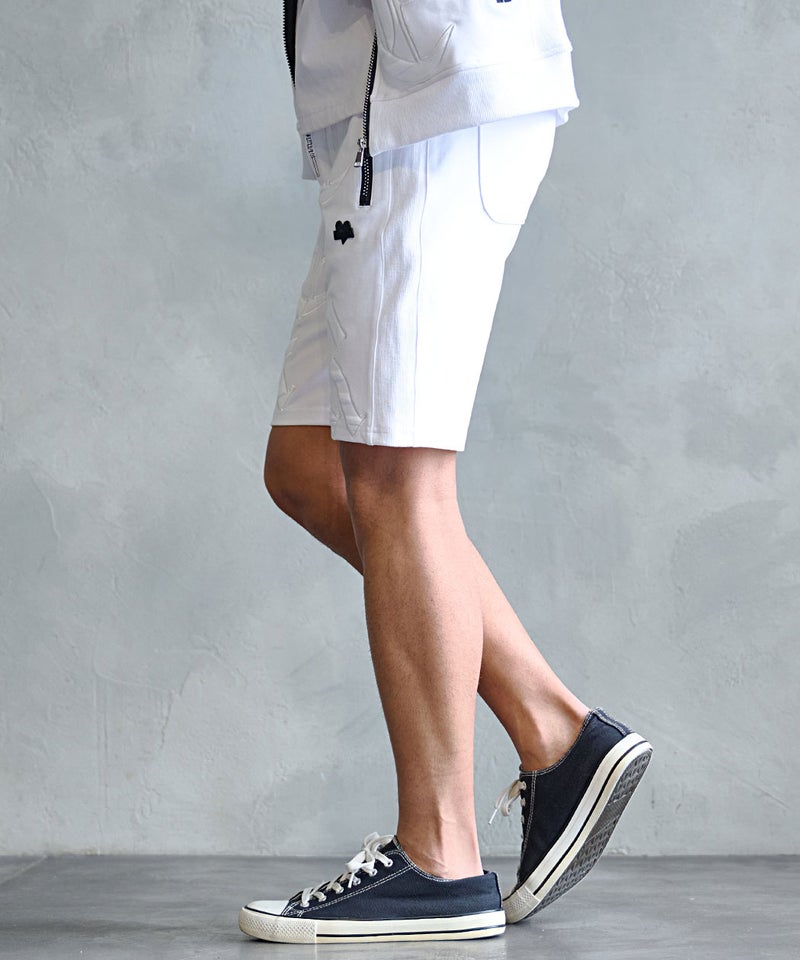 立体的なロゴワッペンが目を引く、存在感のあるショートパンツ。