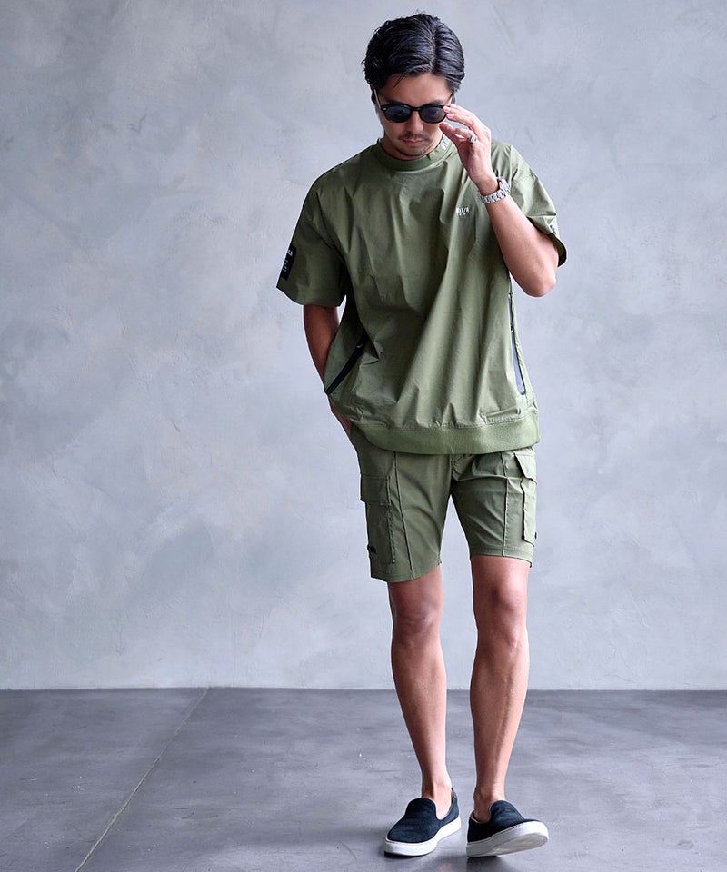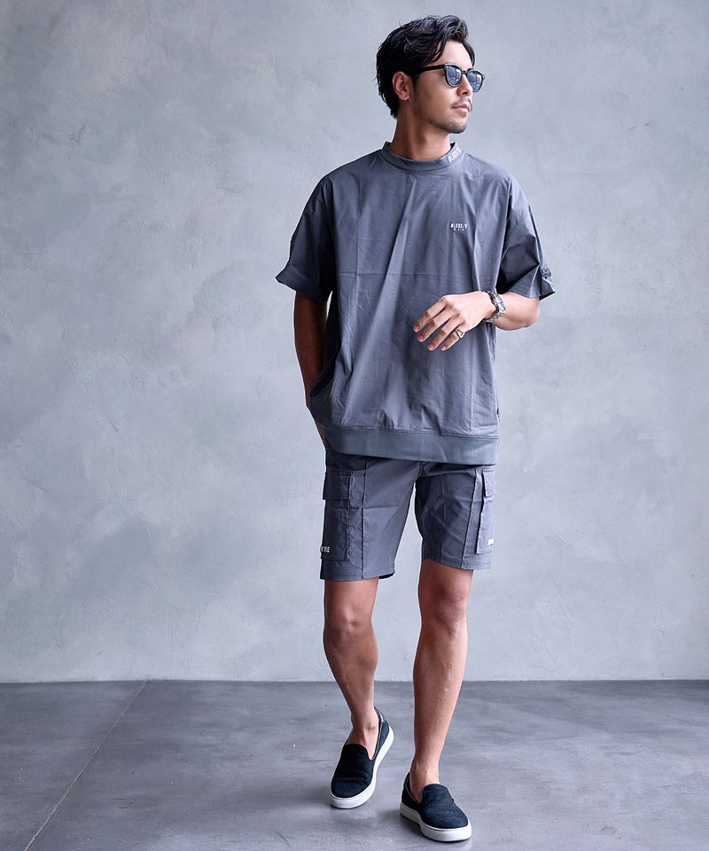 単品使いはもちろん、同素材のTシャツと合わせたセットアップスタイルもオススメ。