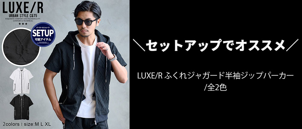 セットアップやデニム、プリント加工などのスタイリングを楽しむ。