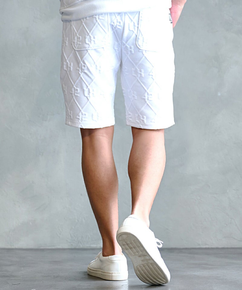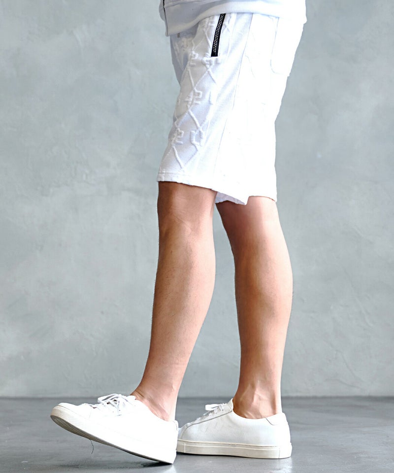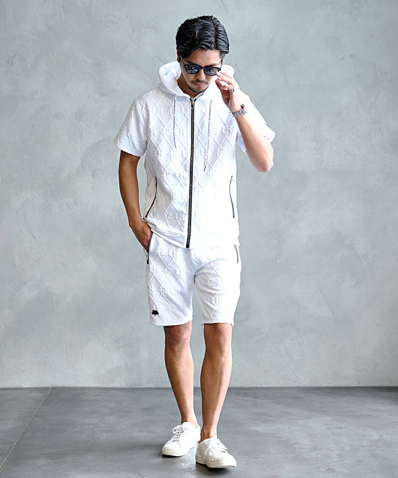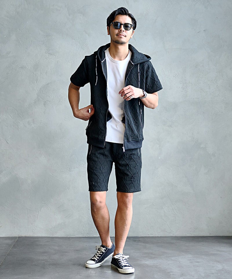 同素材のトップスと合わせればセットアップとしても着用可能。
