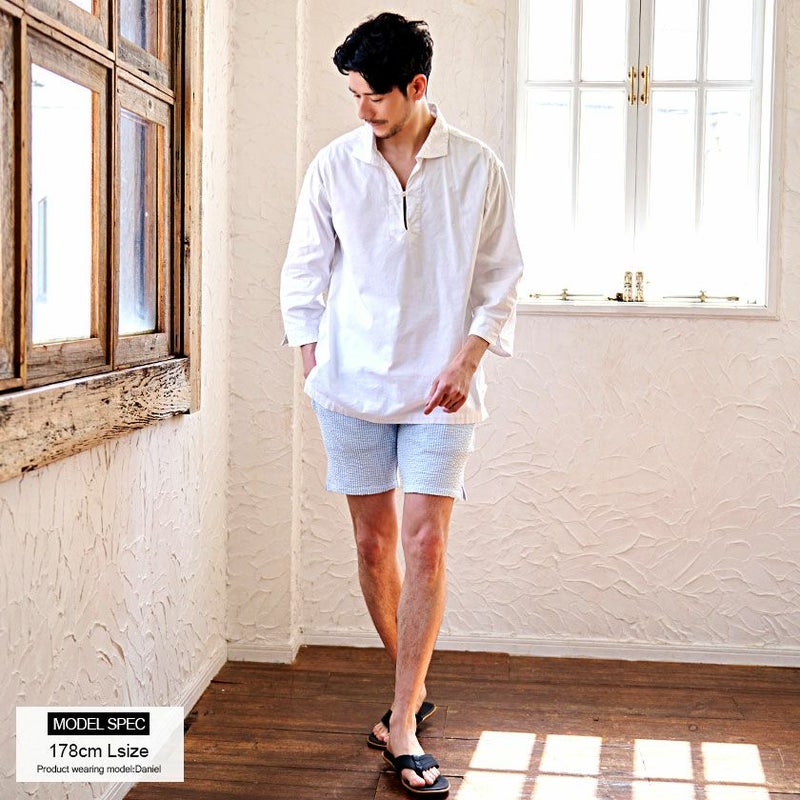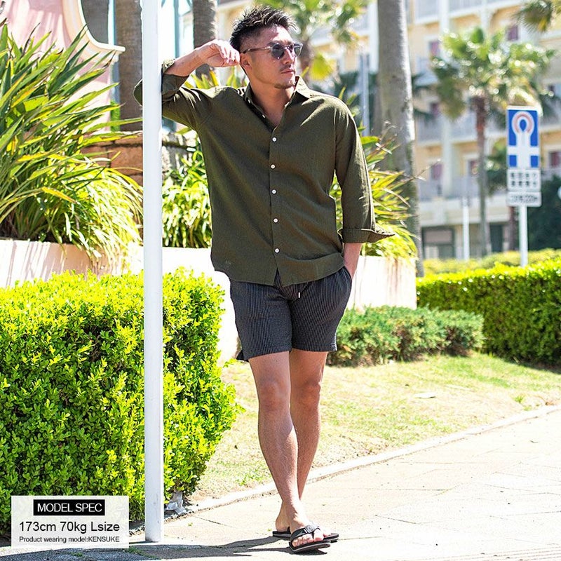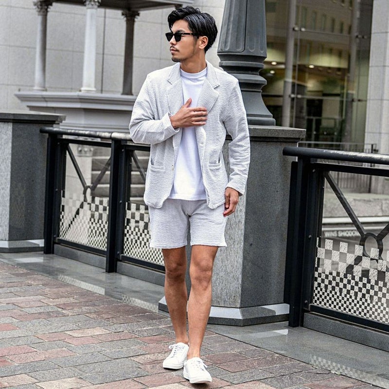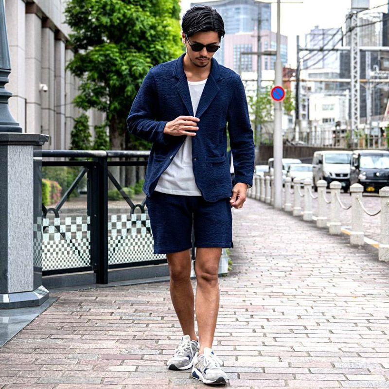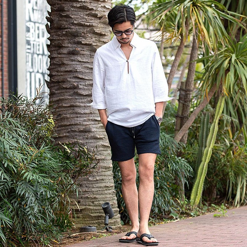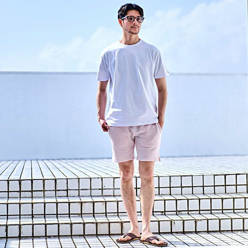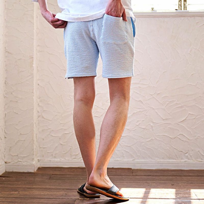 表面の凹凸が特徴的で通気性に優れたシアサッカー素材を採用。