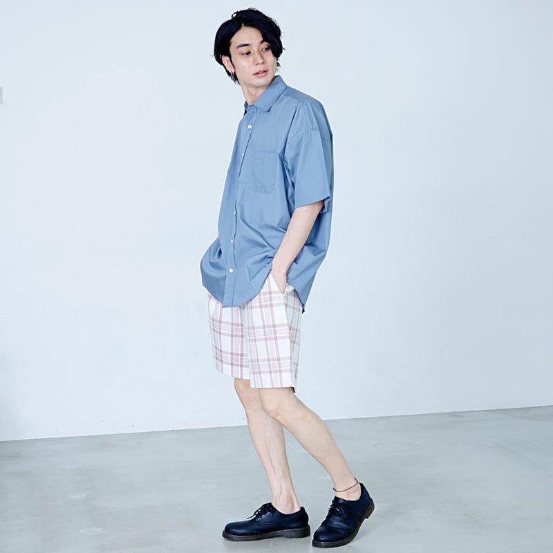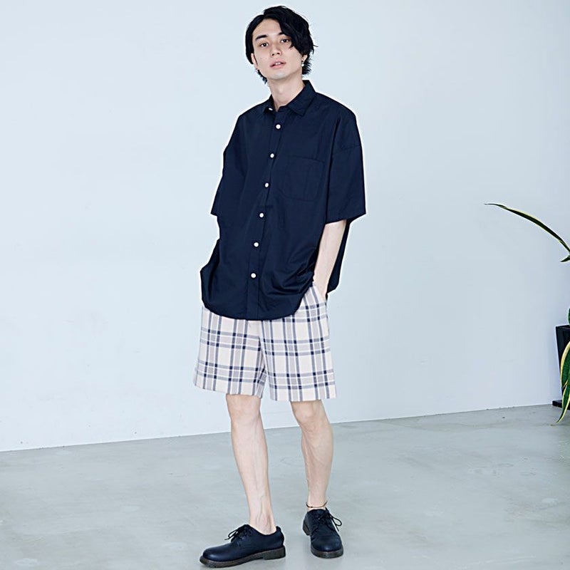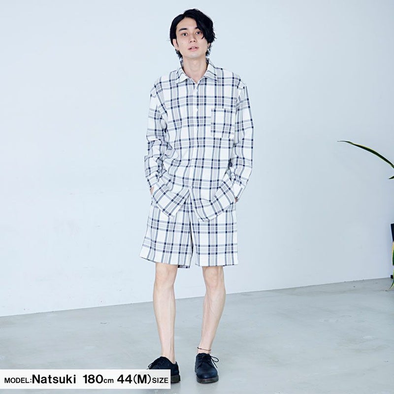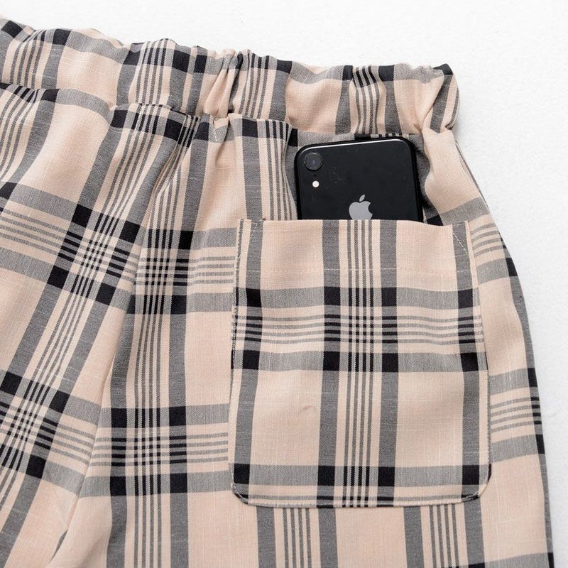 シンプルなチェック柄のハーフパンツ。