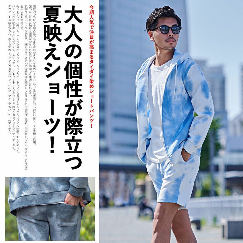 個性的で尚且つ今期人気の高まる注目のタイダイ染めハーフパンツ。