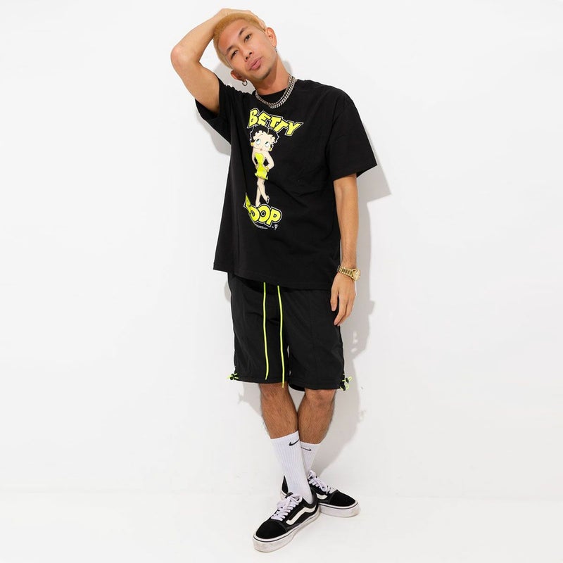 ネオンカラーのドローコードがアクセントになったハイパートラックパンツショーツです。