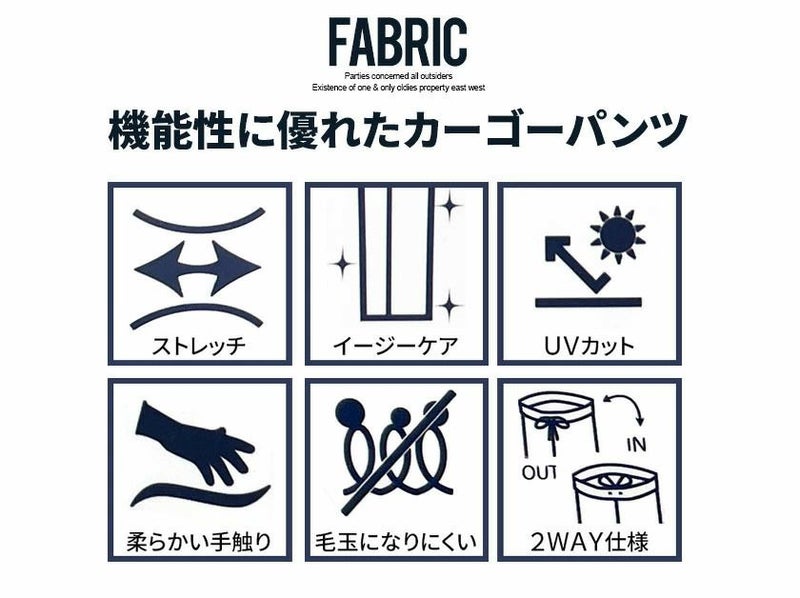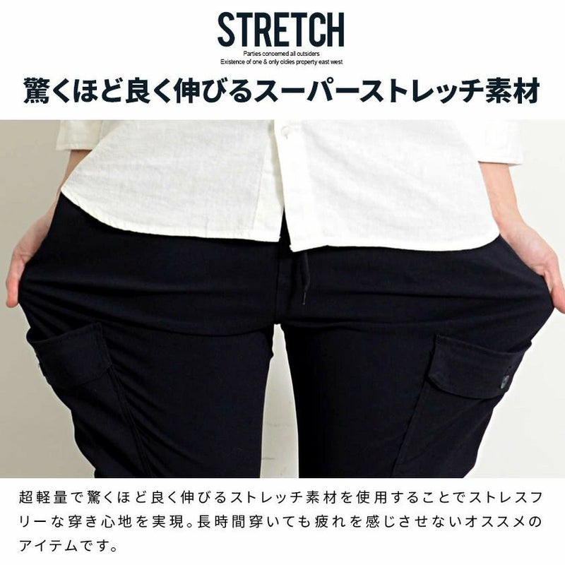 良く伸びるストレッチ素材を使用したカーゴパンツ。