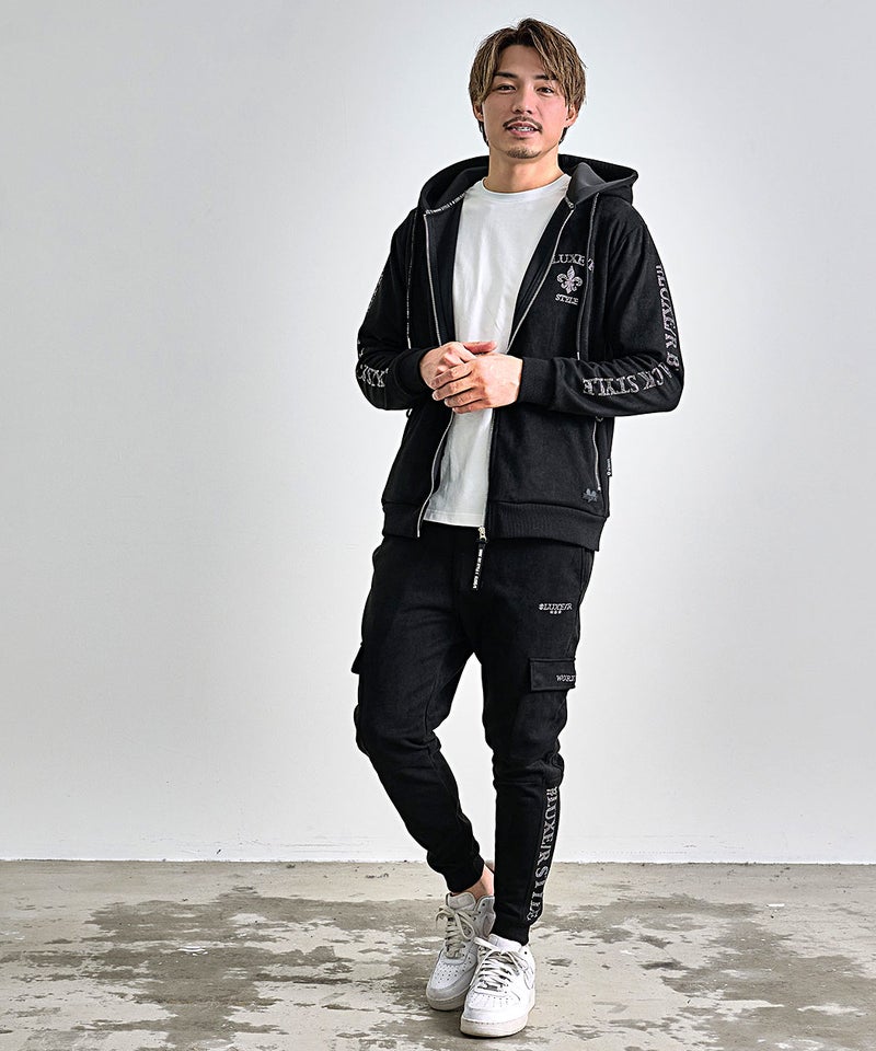 フード部分にもビッグプリント&フルジップを施し、360度抜かりのないインパクト抜群の仕上がりです。