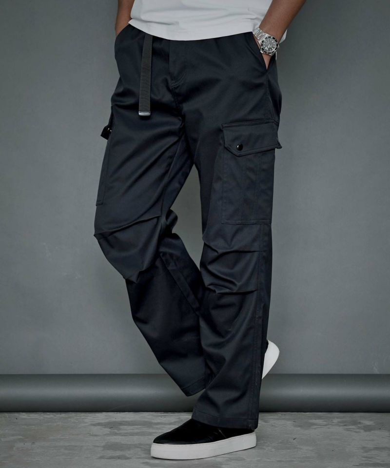 カーゴパンツ メンズ ブランド オシャレ 大人 ワイドパンツ イージーパンツ ベルト付 カーゴ カジュアル スポーティー ミリタリー ブラック 黒 CavariA CavariA(キャバリア)ベルト付ワイドカーゴパンツ/全1色