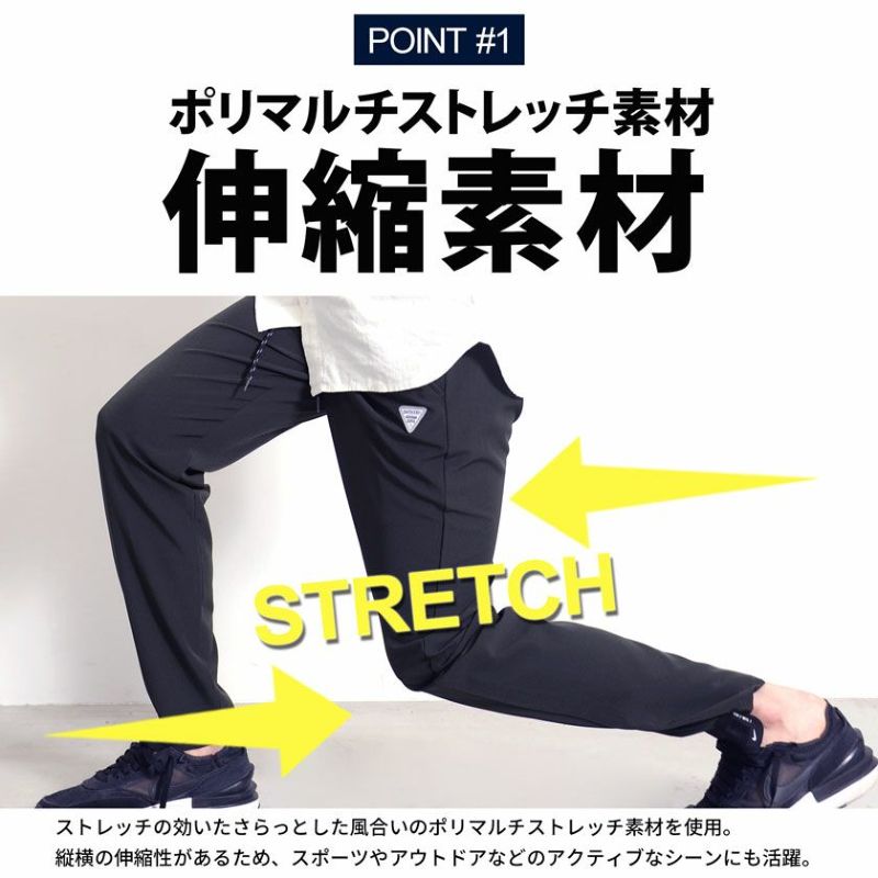 機能性にも優れており、接触冷感、UVカット(紫外線防止)・吸水速乾(ドライ加工)仕様の多機能アクティブパンツ。