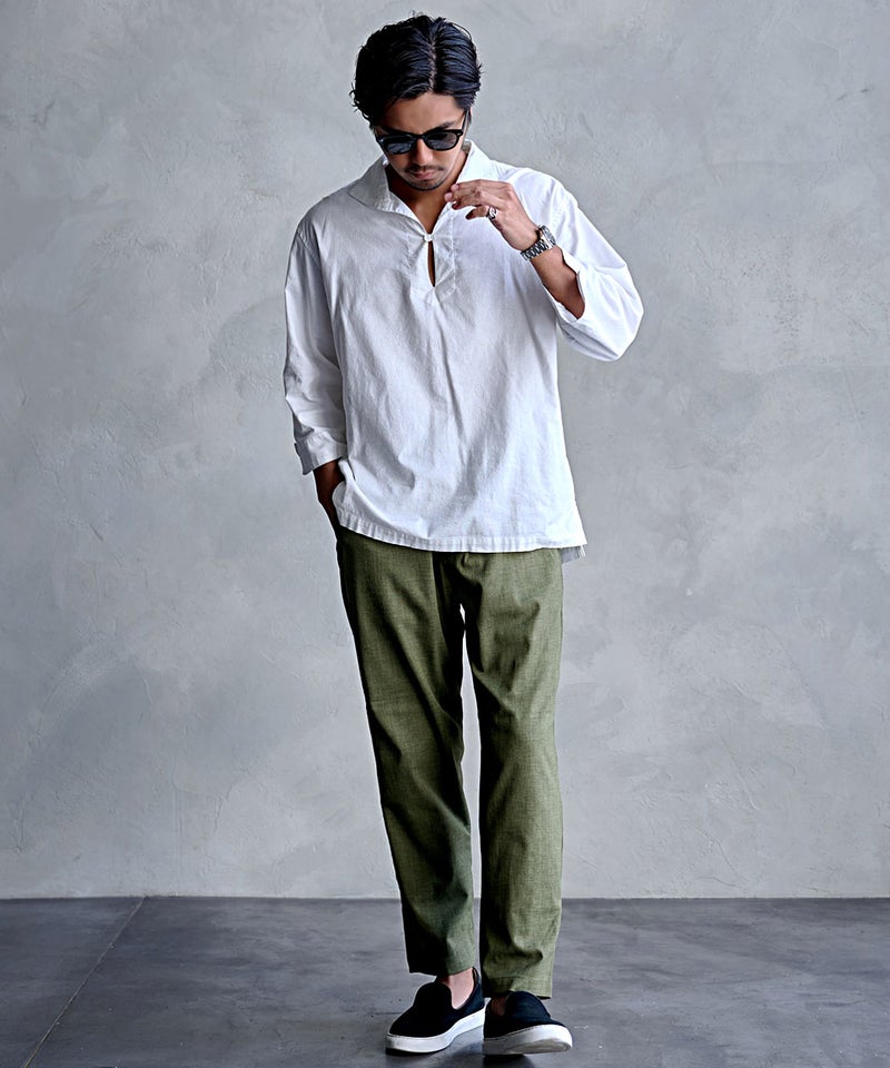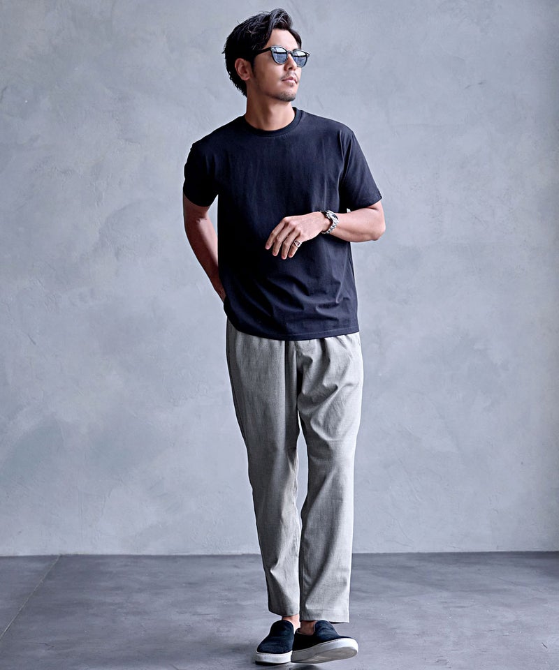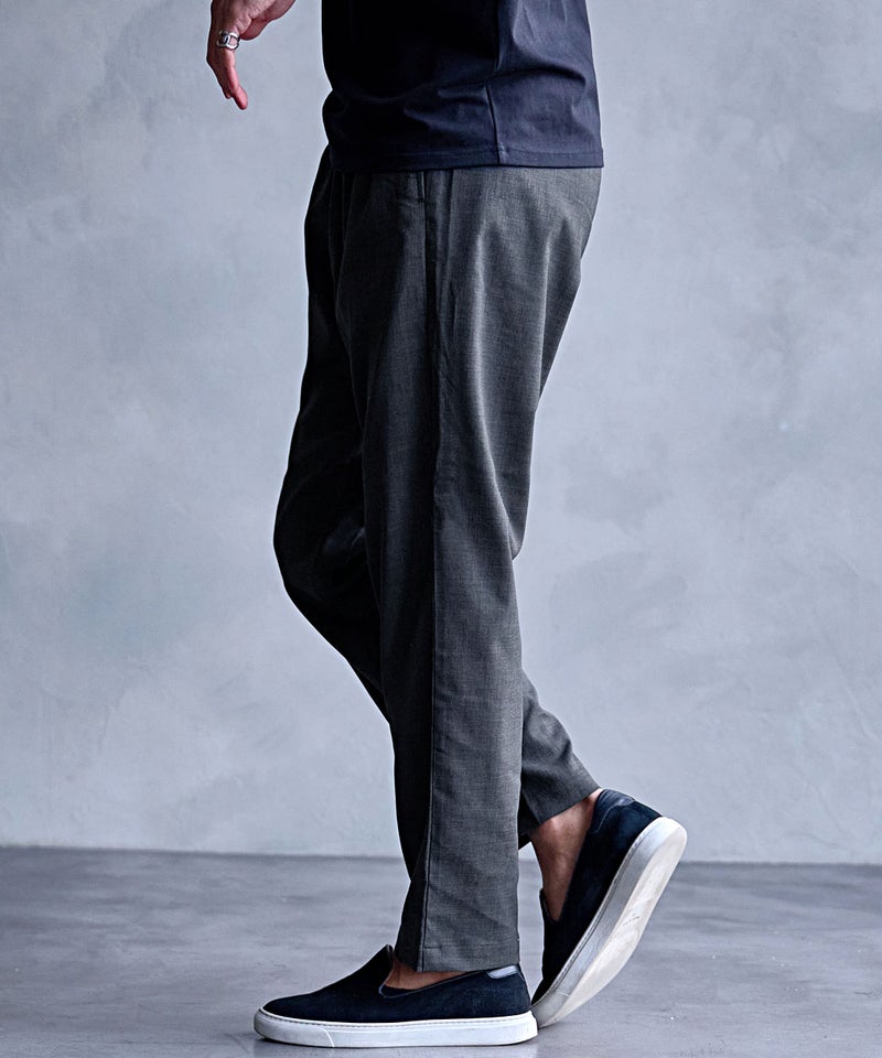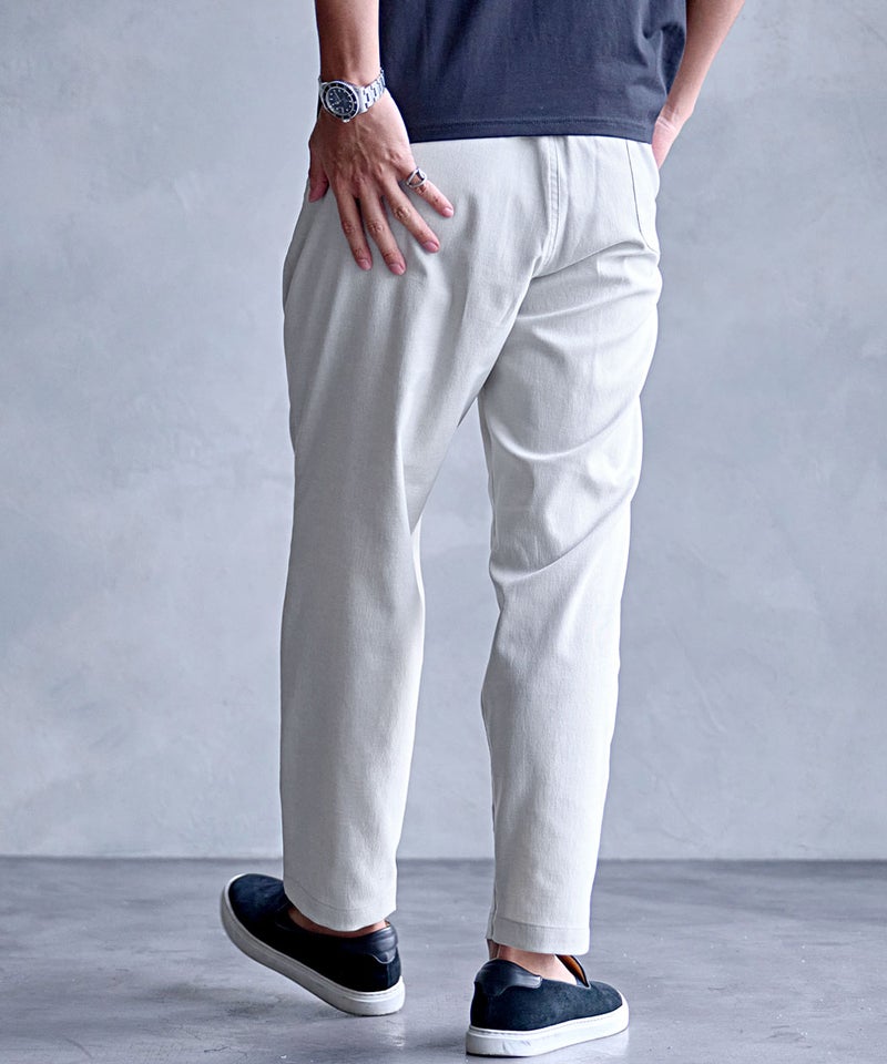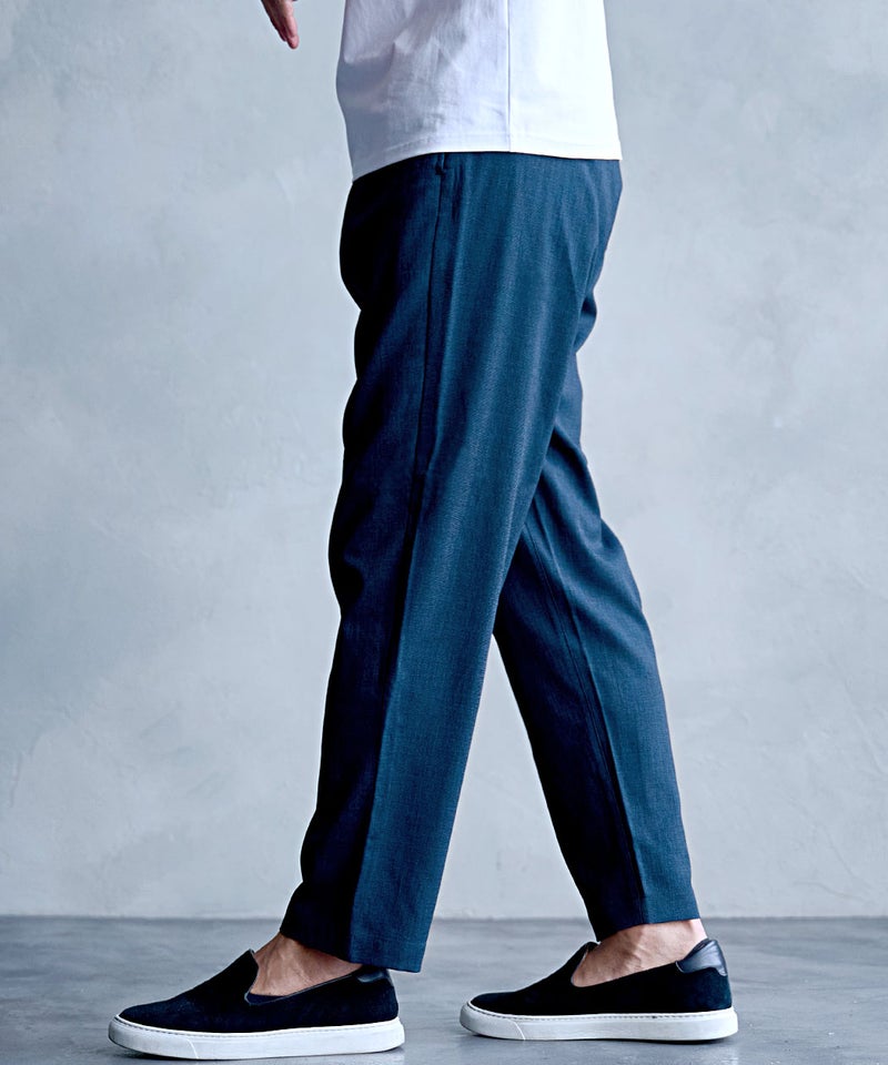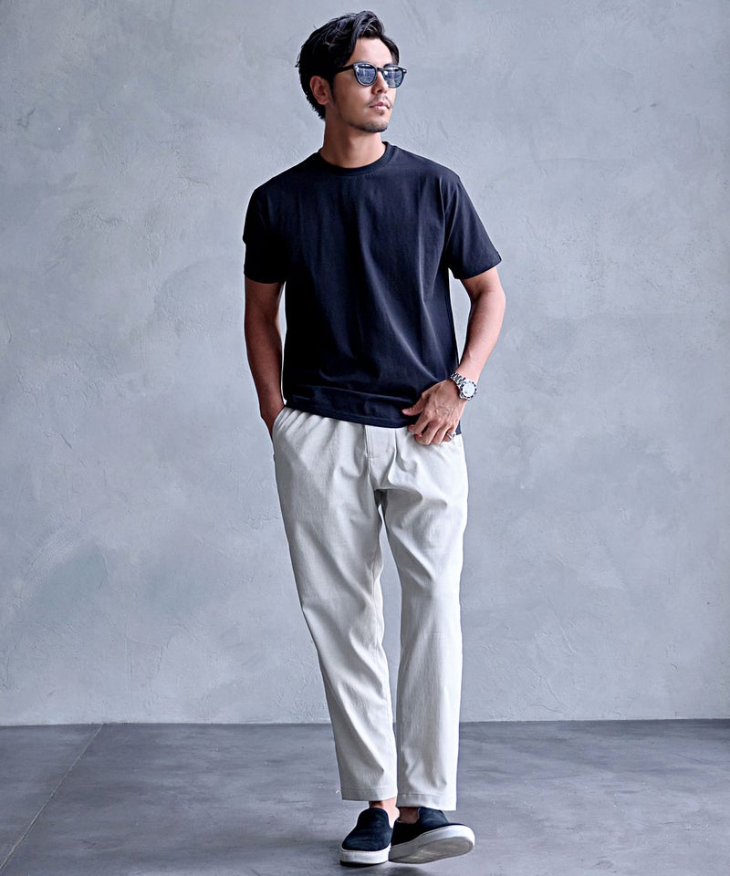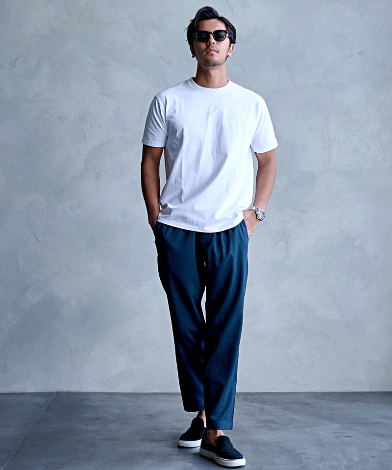 清涼感のある素材感と快適な穿き心地を兼ね備えた一本は、夏のワードローブに欠かせない万能パンツ。