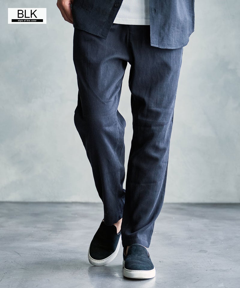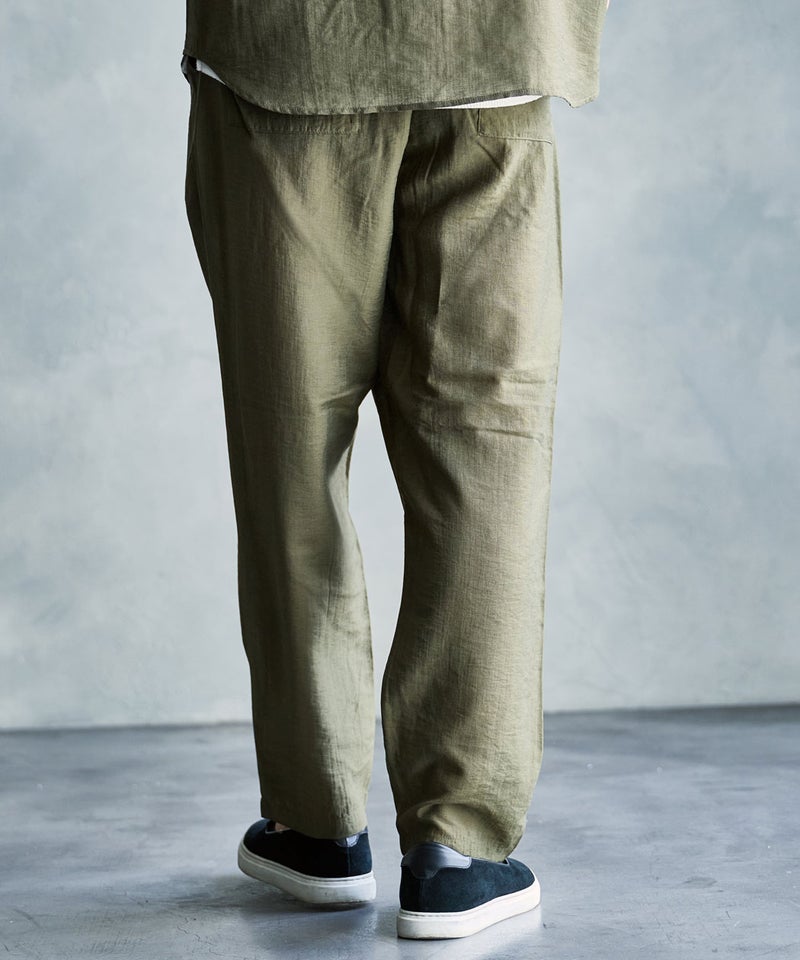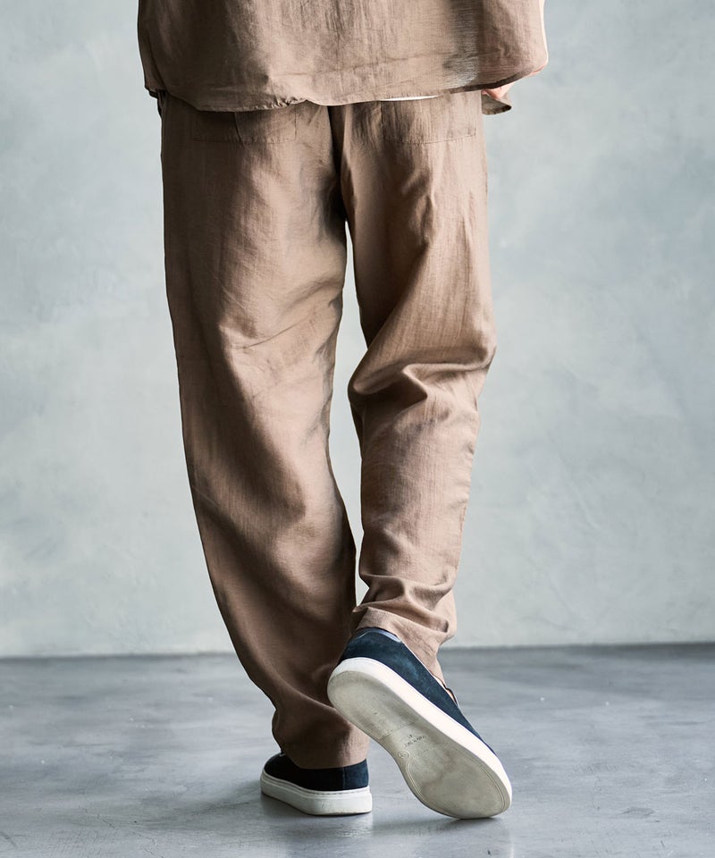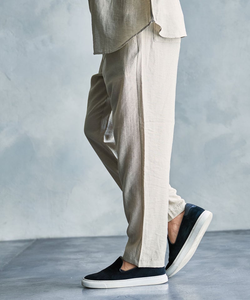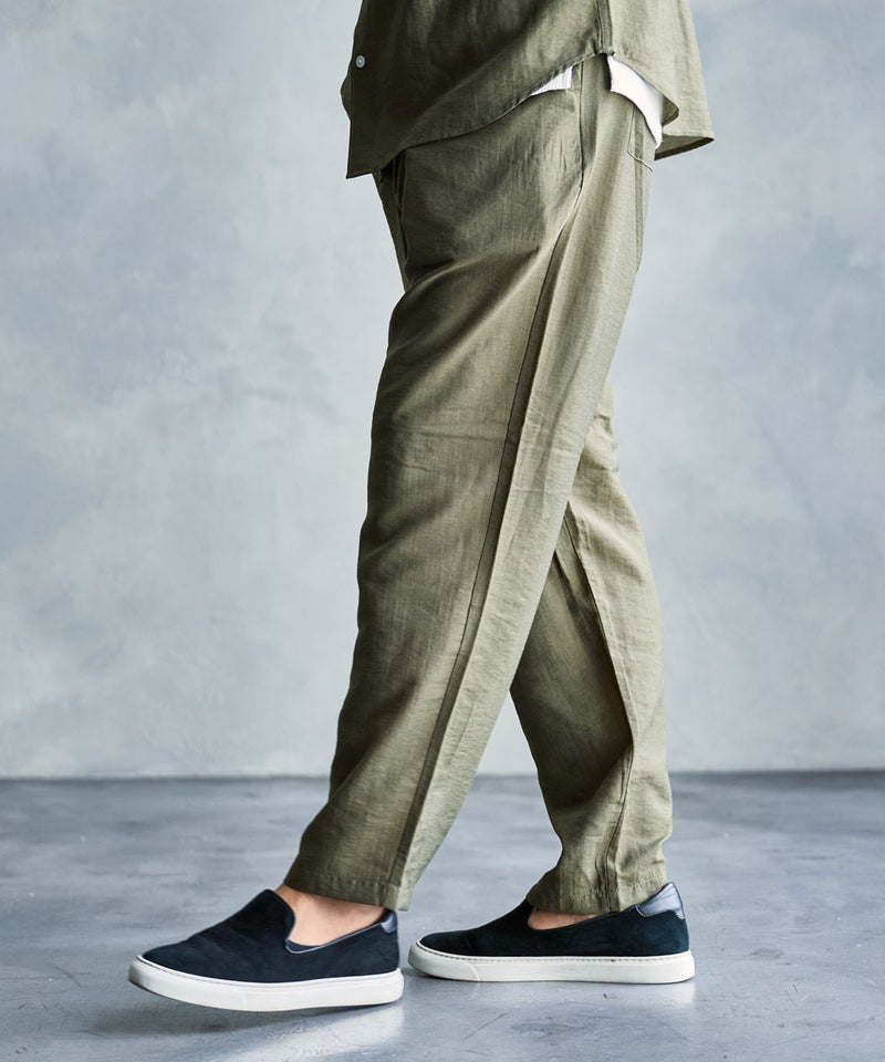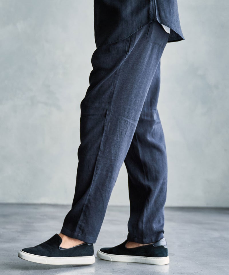 リラックス感のある穿き心地ながらも、程よくテーパードの効いたシルエットが野暮ったさを抑え、すっきりとした印象に仕上がります。