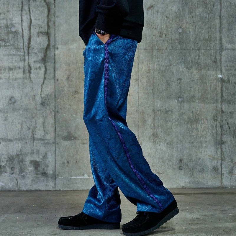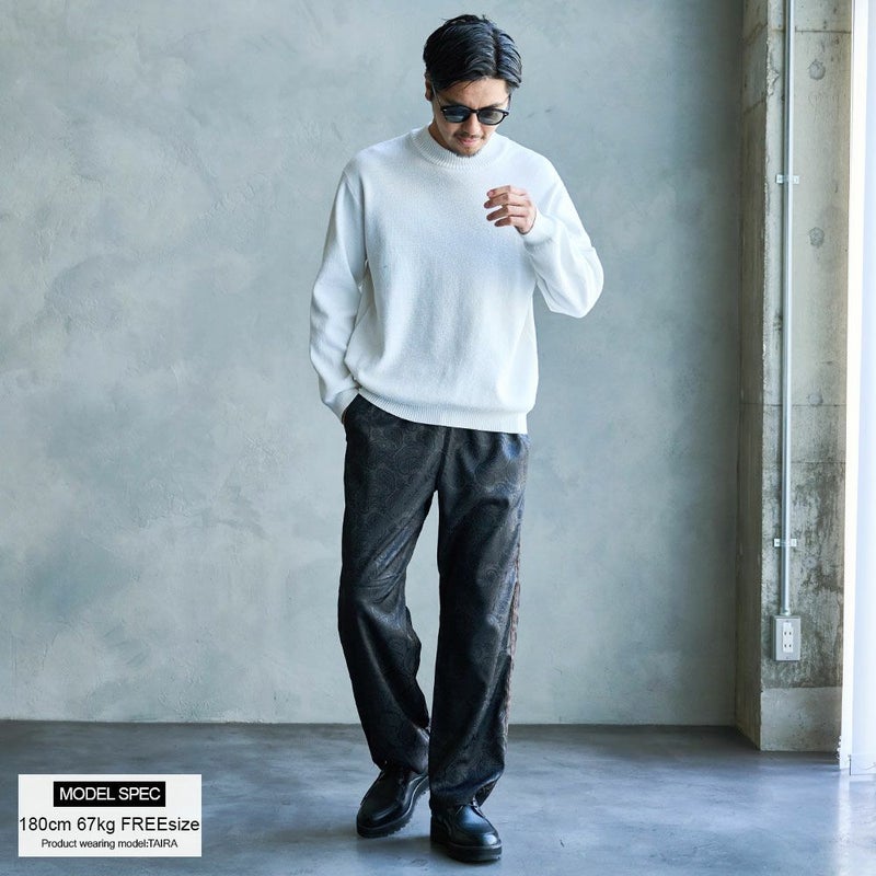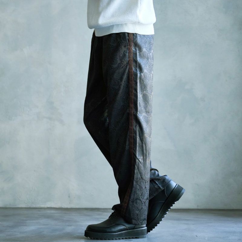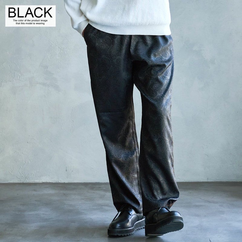 ペイズリー柄をジャカード織りで表現した、存在感のあるストレートシルエットのメンズパンツ。
