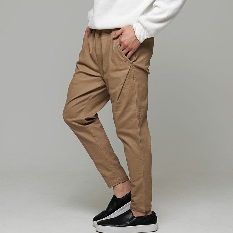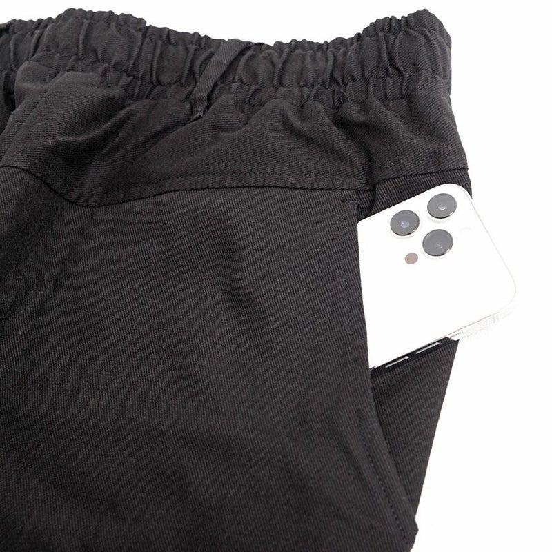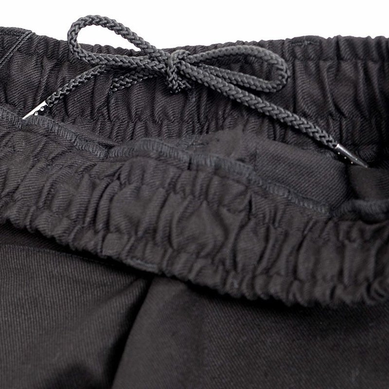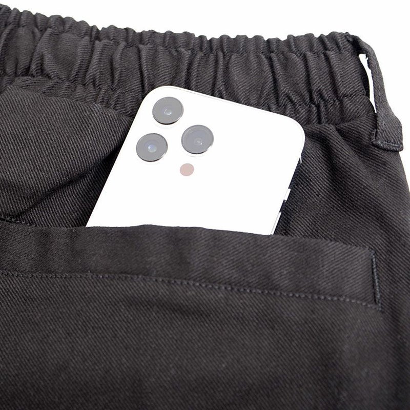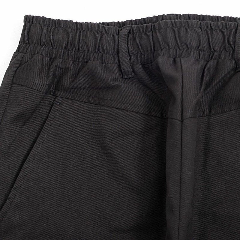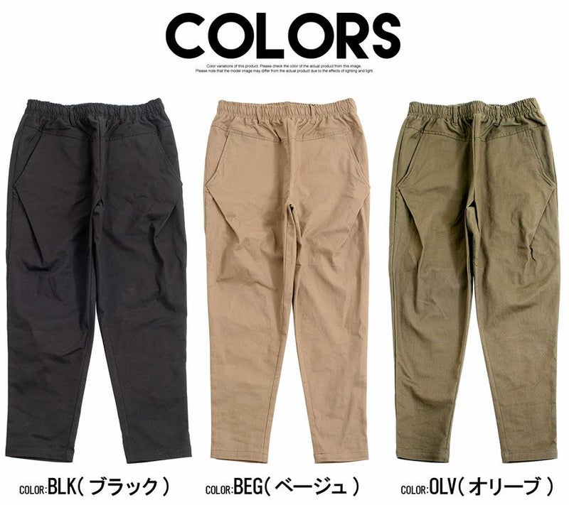 ウエスト部分はゴム+コード仕様にし、穿く・脱ぐ・座る・かがむなどウエスト周りの動作をスムーズにしたイージーパンツ仕様。