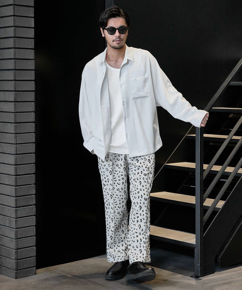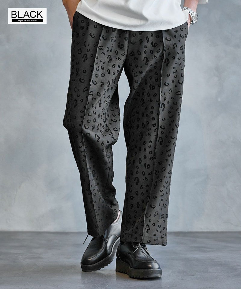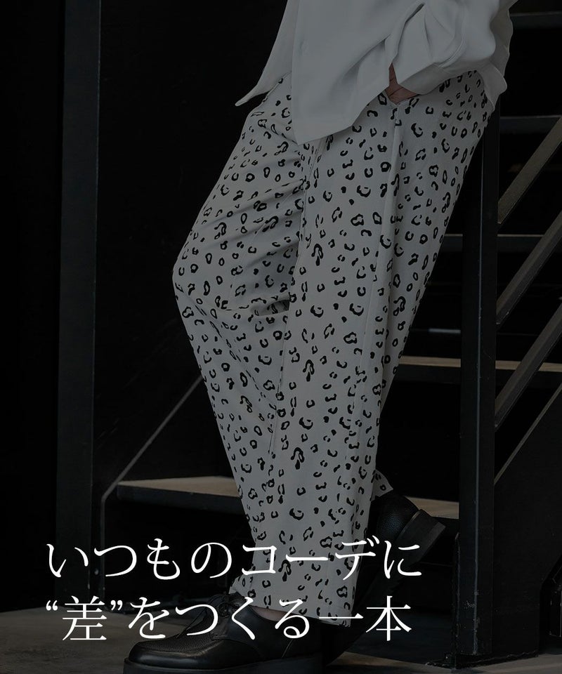 さりげないレオパード柄がスタイリングにアクセントを加えるイージーパンツ。