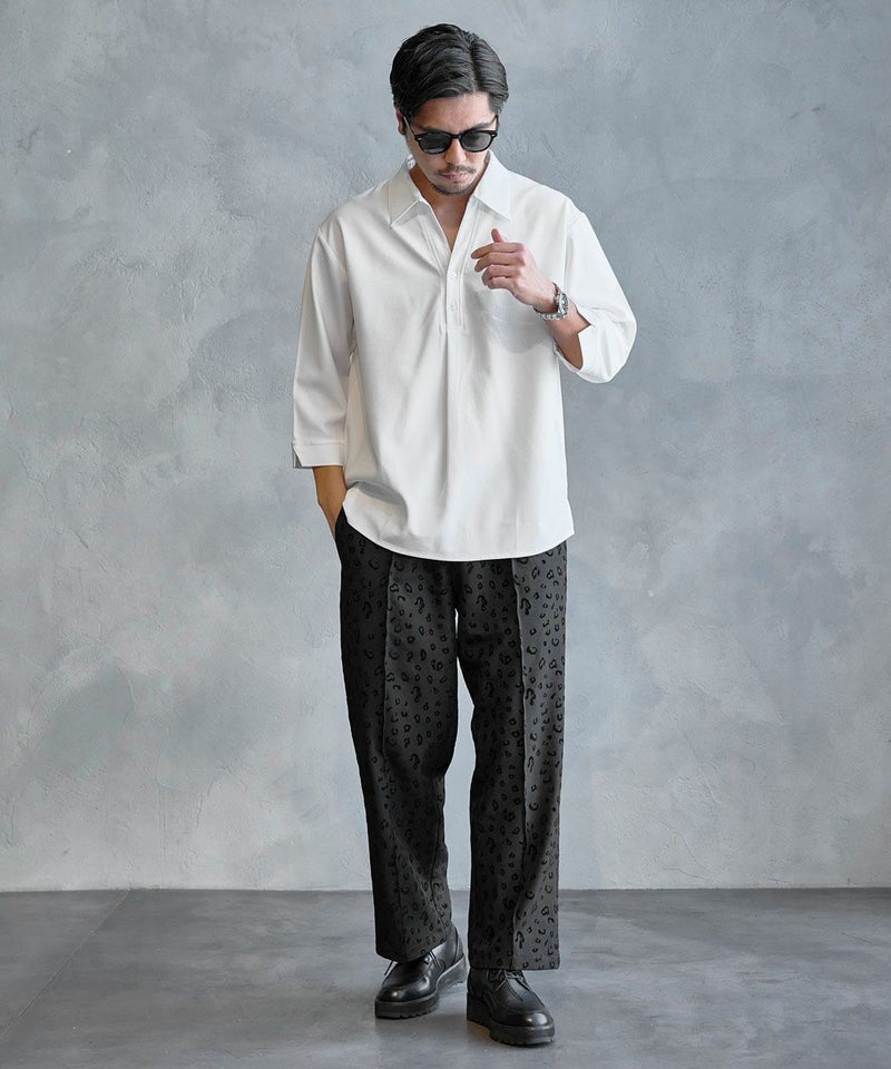 程よくワイドなシルエットながら、落ち感のある素材感によりすっきりとしたバランスで着用できます。