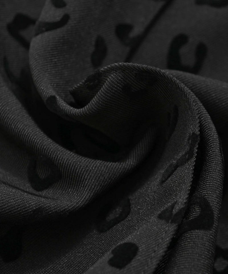 ベース生地にフロッキープリントを施すことで、柄に立体感と奥行きを持たせ、派手すぎず上品な印象に仕上げています。