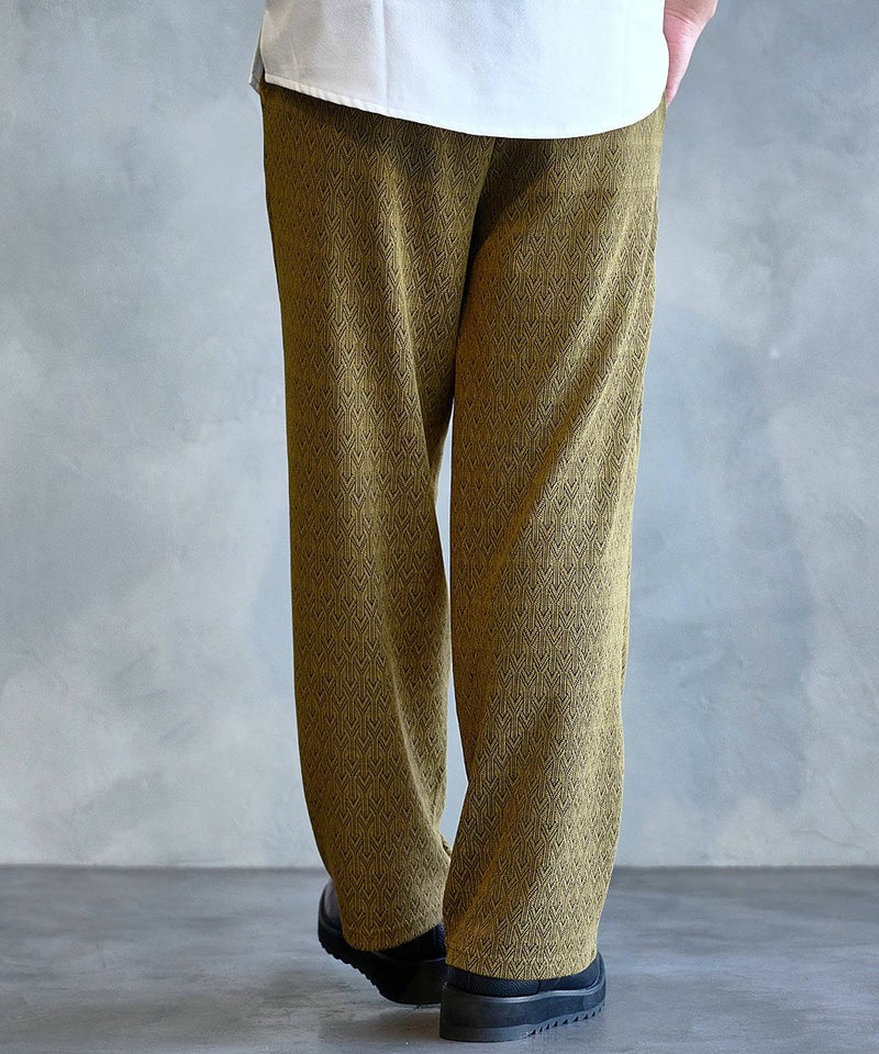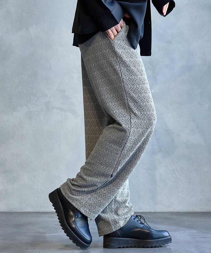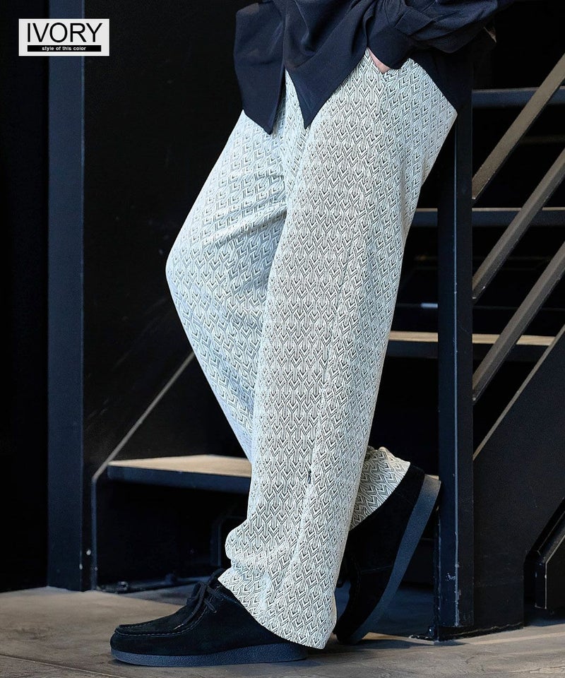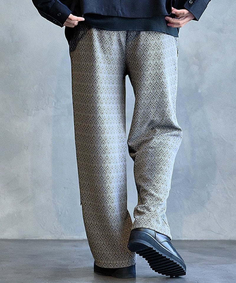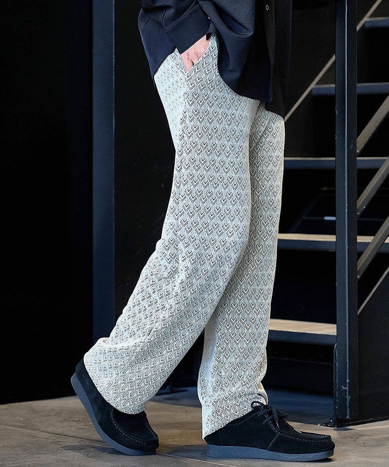 シンプルながら総柄デザインが目を引くイージーパンツ。