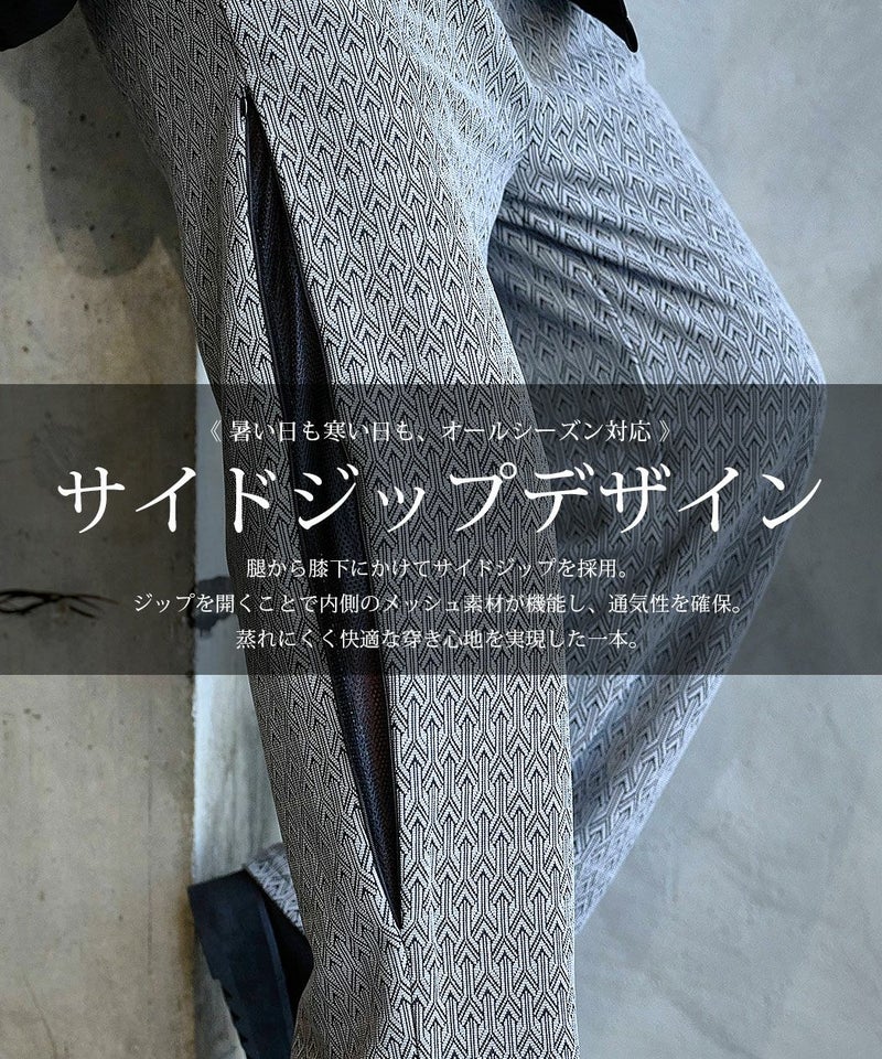 腿から膝下にかけて施されたサイドジップが、他にはないデザインのアクセントに。
