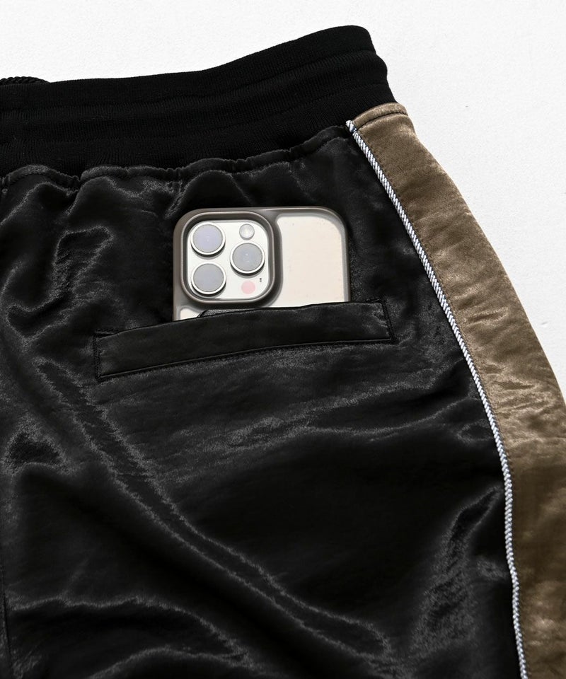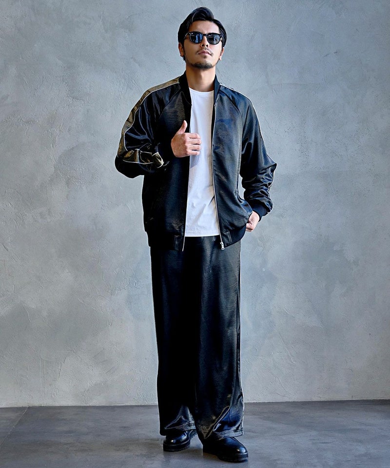 ※こちらの商品はパンツのみの販売となります。別売りのジャケットと組み合わせることで、セットアップとしてもお使い頂けます。 CavariA(キャバリア)サテンサイドライントラックパンツ/全2色