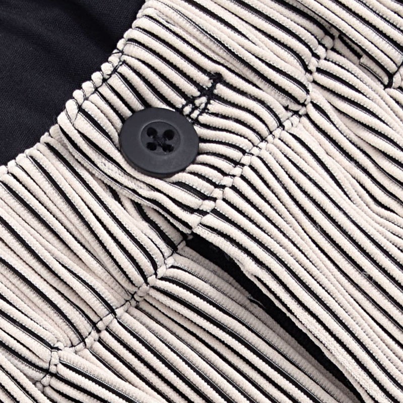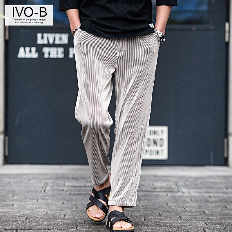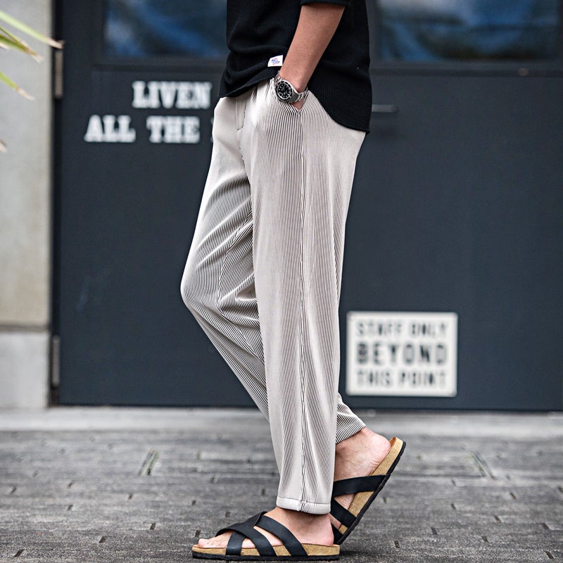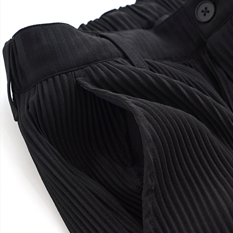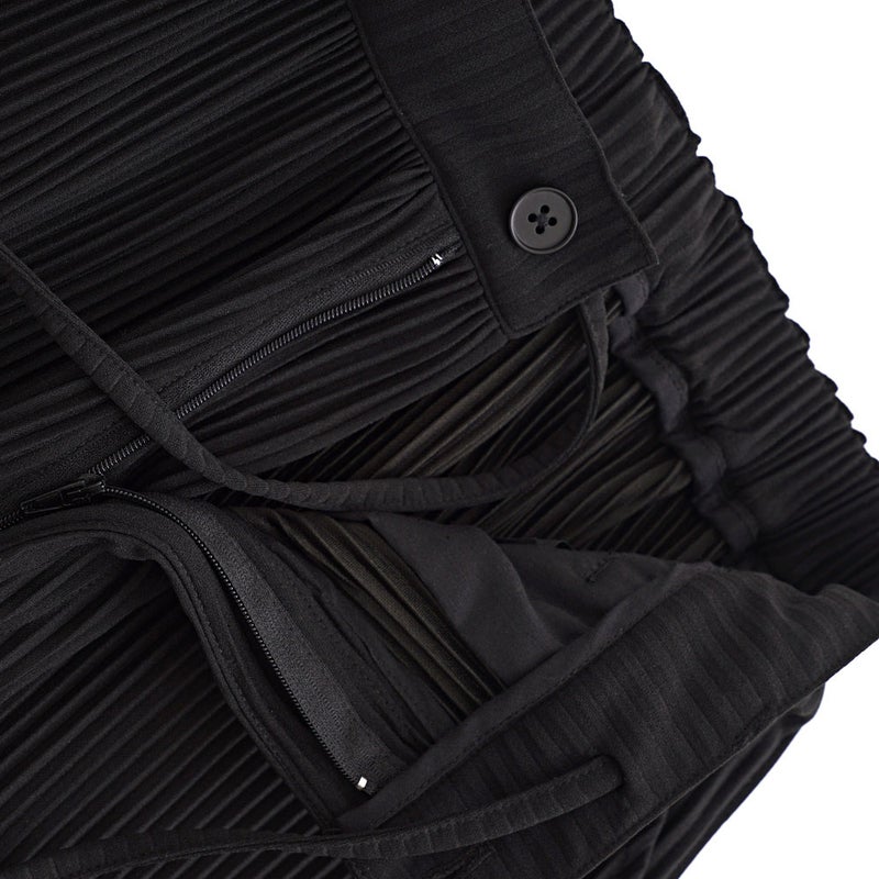 細かく施したプリーツ加工が特徴的な、上品さとリラックス感を兼ね備えたイージーパンツ。