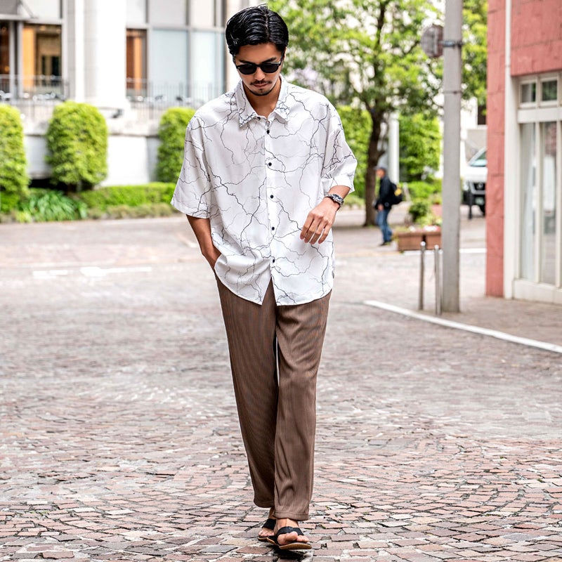 足元にボリューム感のあるスニーカーを合わせればトレンド感のあるストリートスタイルに、レザーシューズを合わせれば、きれいめやモード寄りのコーディネートも楽しめます。