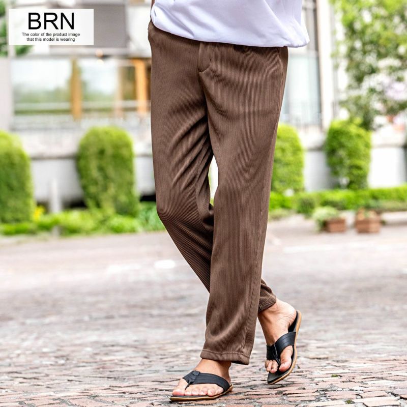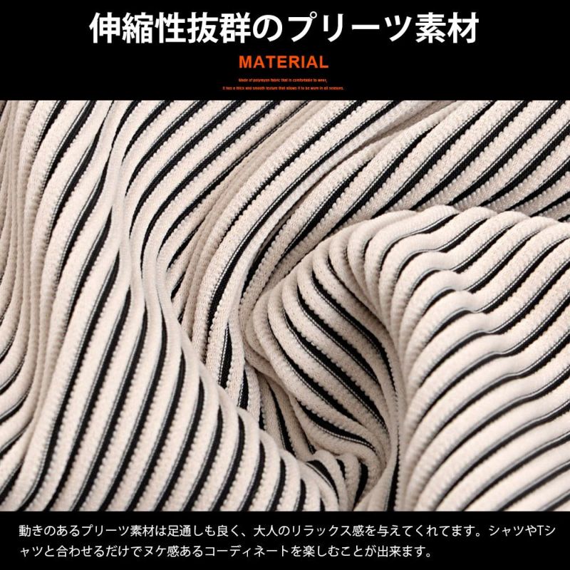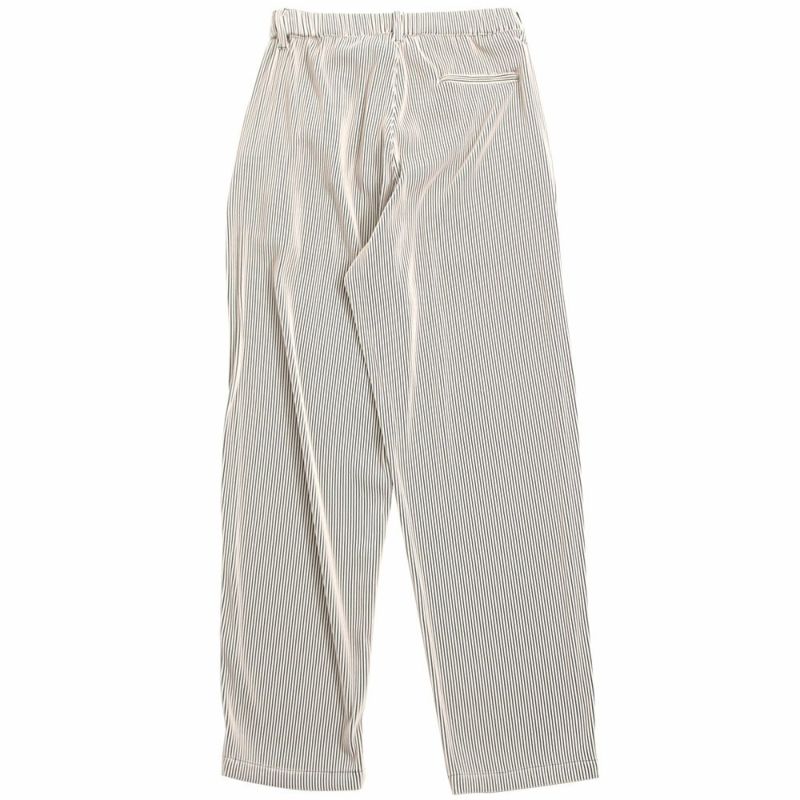 細かいプリーツ加工を施しゆったりとしたリラックス感漂うシルエットのロングパンツ。