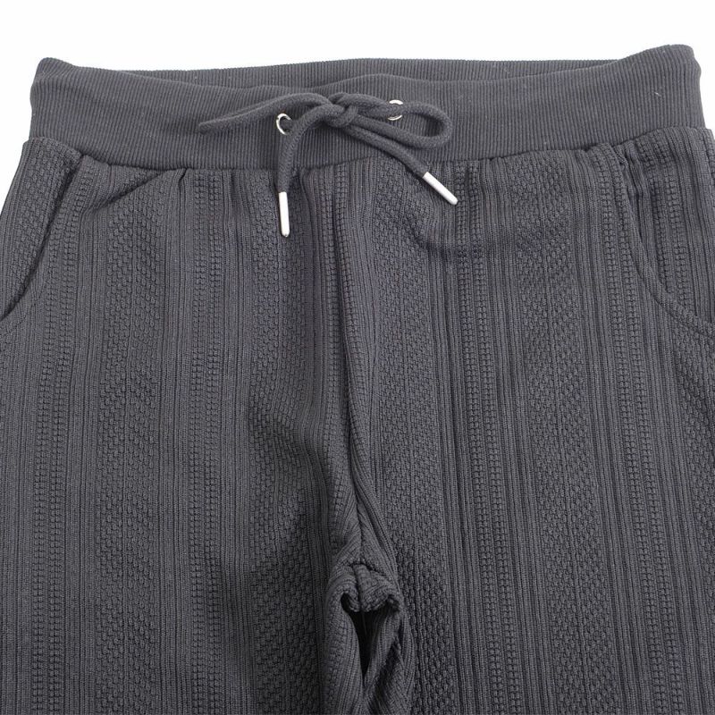 表面に凹凸のある織り目が特徴の柄を使用したニットソーパンツ。