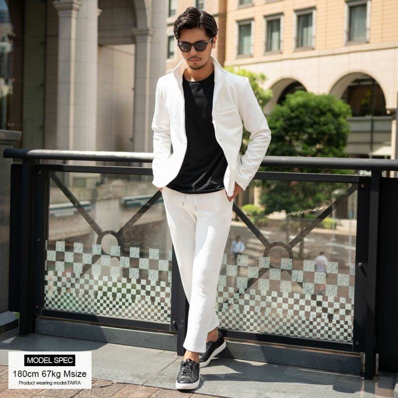 同素材のジャケットと合わせたセットアップはもちろん、単品でもお使いいただけます。