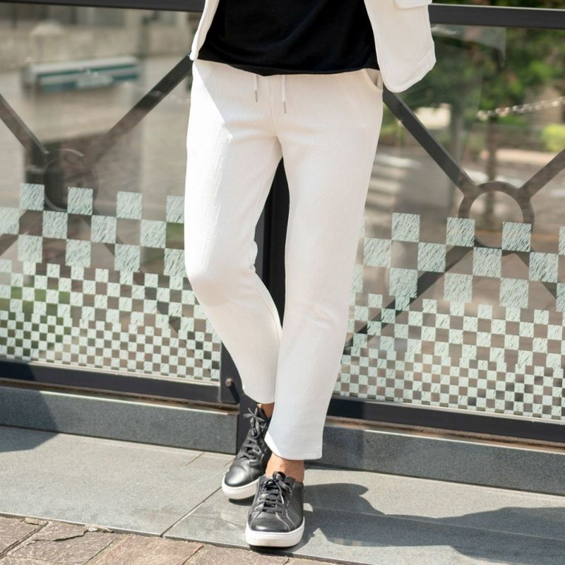 ※こちらの商品はパンツのみの販売となります。別売りのジャケットと組み合わせることで、セットアップとしてもお使い頂けます。 CavariA(キャバリア)ふくれシェブロン柄アンクルパンツ/全2色