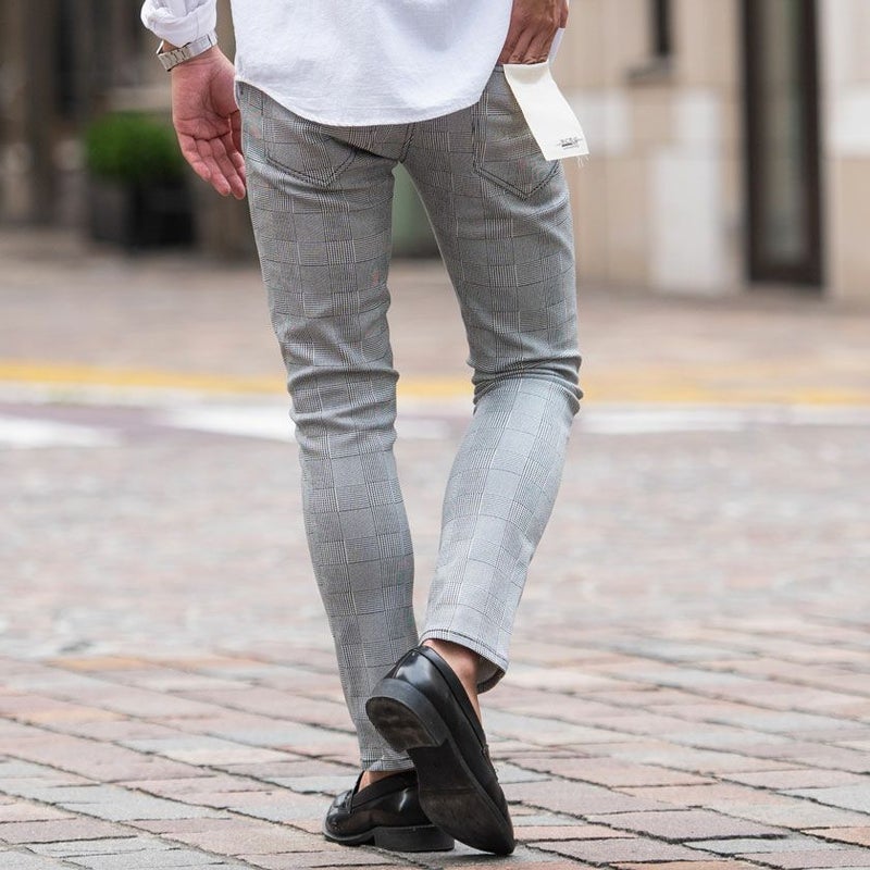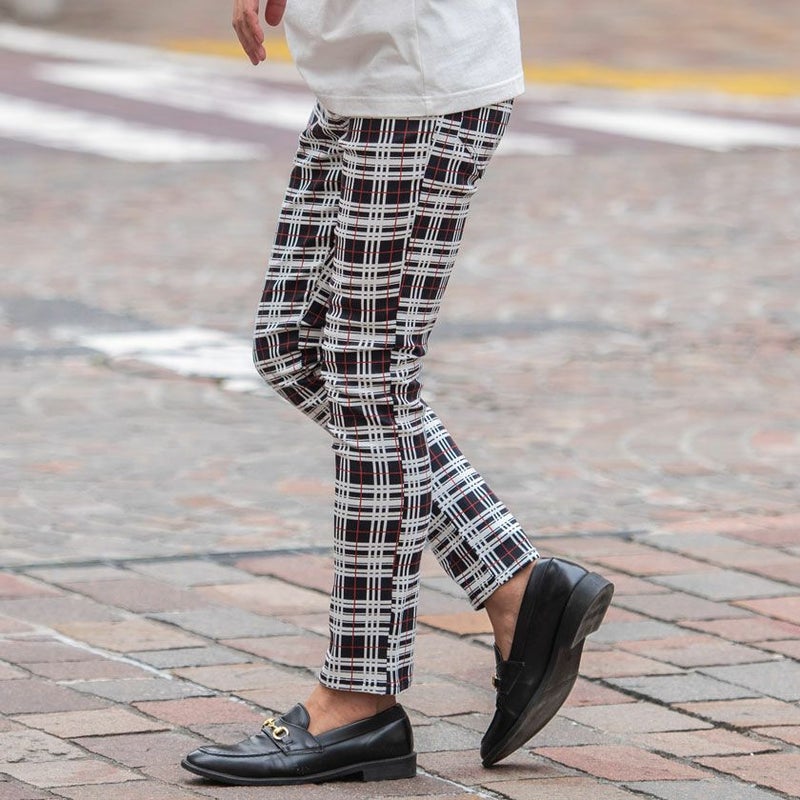 スタイリッシュなシルエットで、トレンド感のあるチェックパンツ。