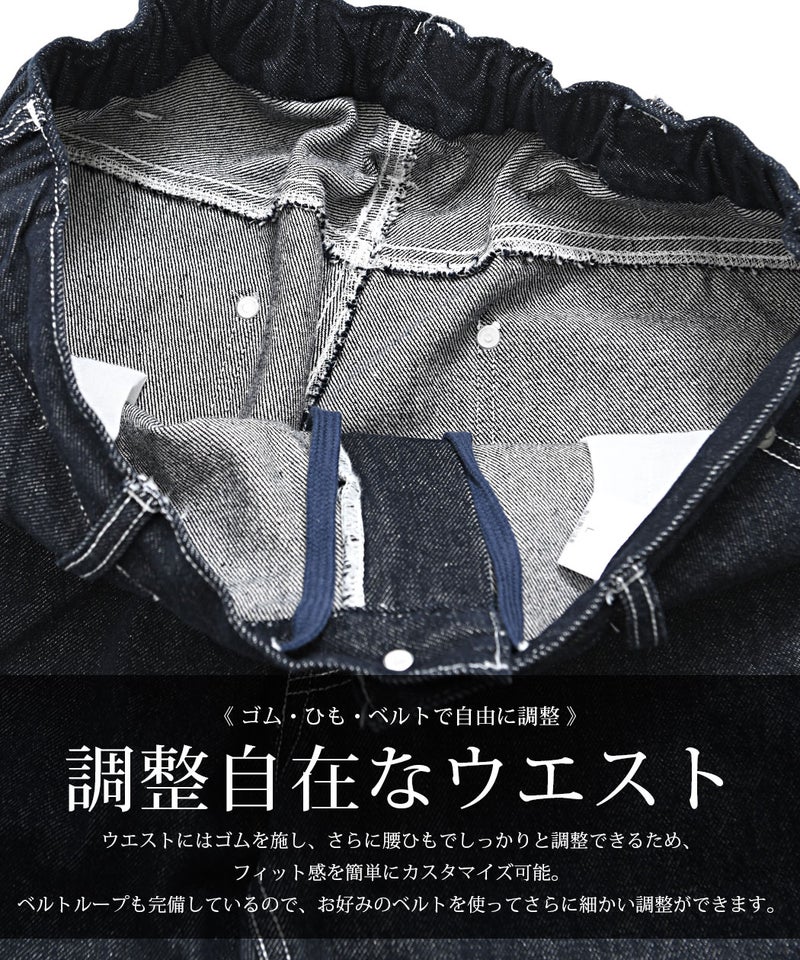ウエストにはゴムを施し、さらに腰ひもでしっかりと調整できるため、フィット感を簡単にカスタマイズ可能。