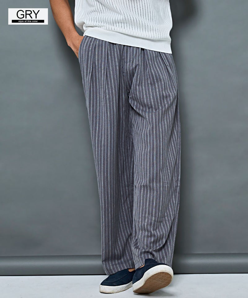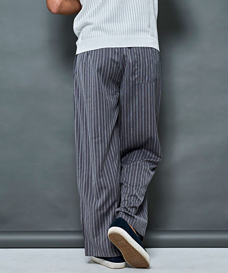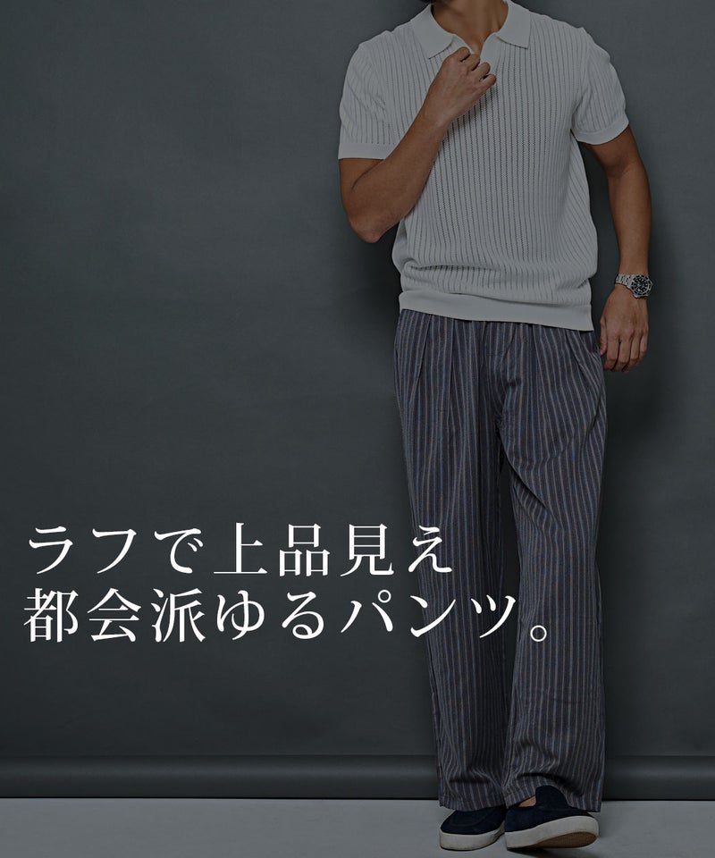 ビジネスにも休日にも馴染む、大人のワードローブに加えたい万能ストライプパンツです。