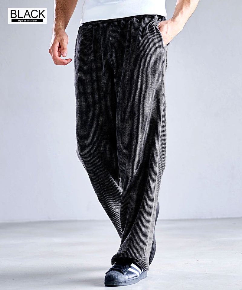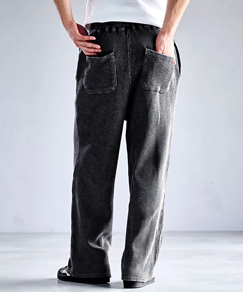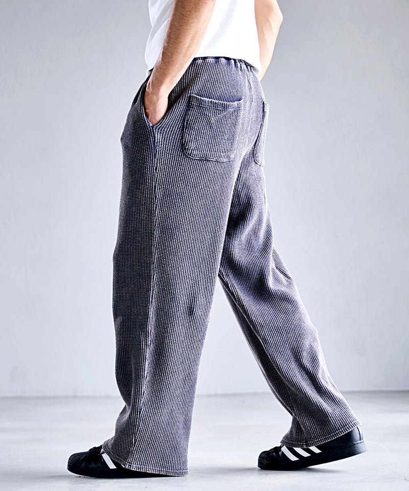 吸水・吸湿・通気性に優れたワッフル素材を使用したイージーパンツ。
