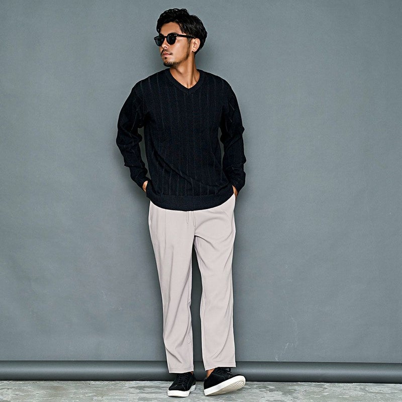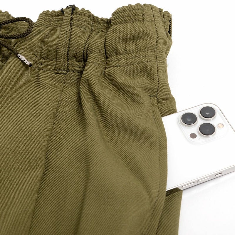 また、ウエストにはゴムシャーリング・ドローストリング仕様を採用した事で、腰回りをしっかりとホールドしながらもリラックス感の高い穿き心地を実現しました。