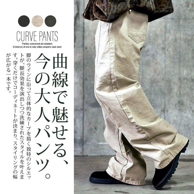 脚のラインに沿って立体的に描かれるカーブシルエットが、自然な抜け感を演出。